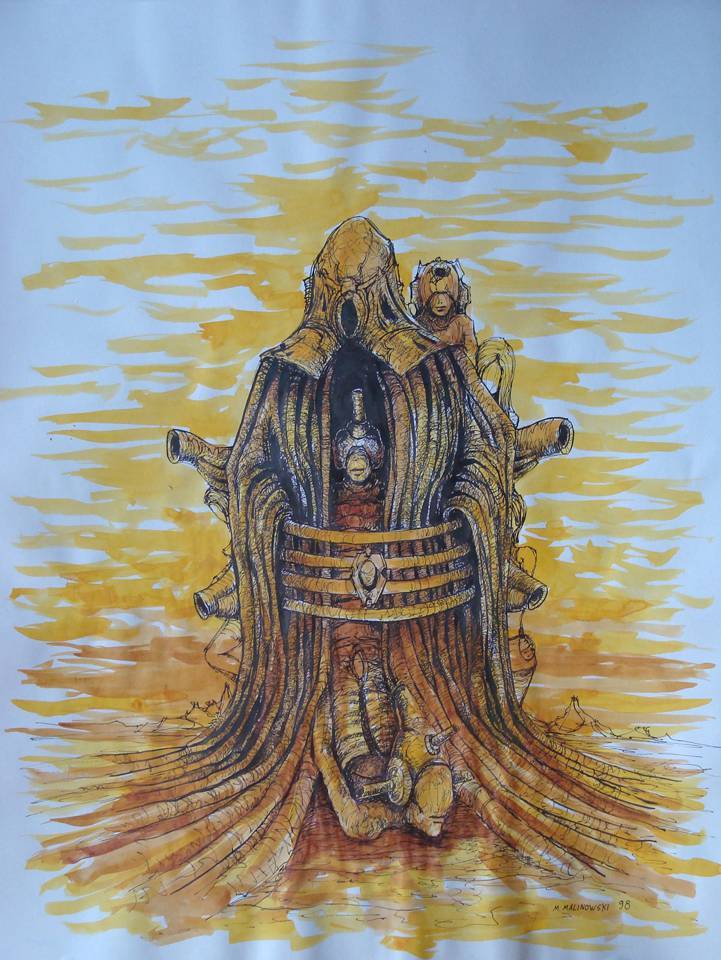 1998r.Obraz malowany na papierze,rysunek tuszem,rapidografem Obraz nieobramowany Obraz podpisany na odwrocie