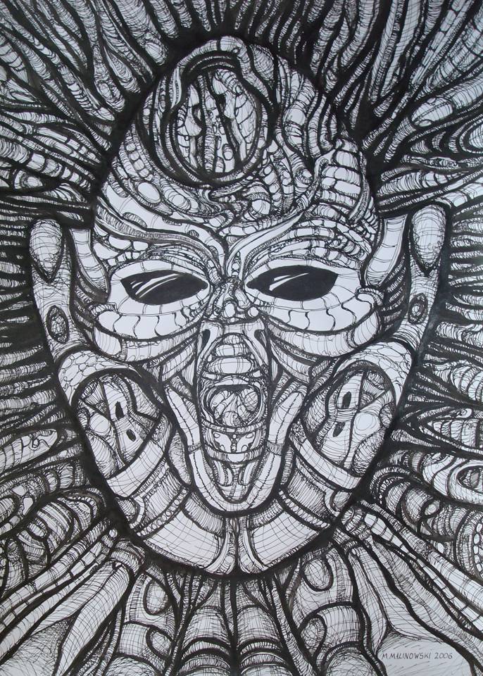 2006r.Obraz malowany na papierze,rysunek tuszem,rapidografem Obraz nieobramowany Obraz podpisany na odwrocie