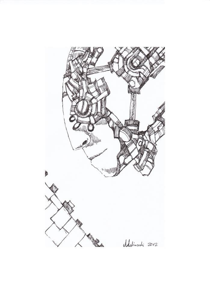 Obraz malowany na papierze rysunek cienkopisem Obraz nieobramowany Obraz podpisany na odwrocie