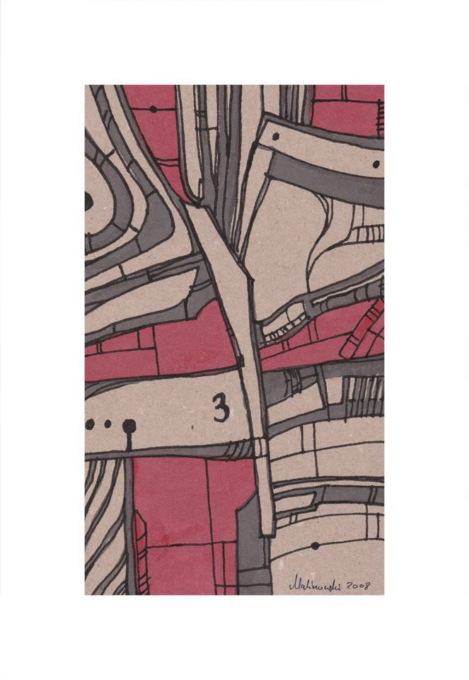Obraz malowany na papierze rysunek rapidografem i tuszem Obraz nieobramowany Obraz podpisany na odwrocie