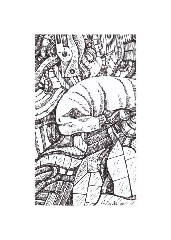 Obraz malowany na papierze rysunek rapidografem Obraz nieobramowany Obraz podpisany na odwrocie