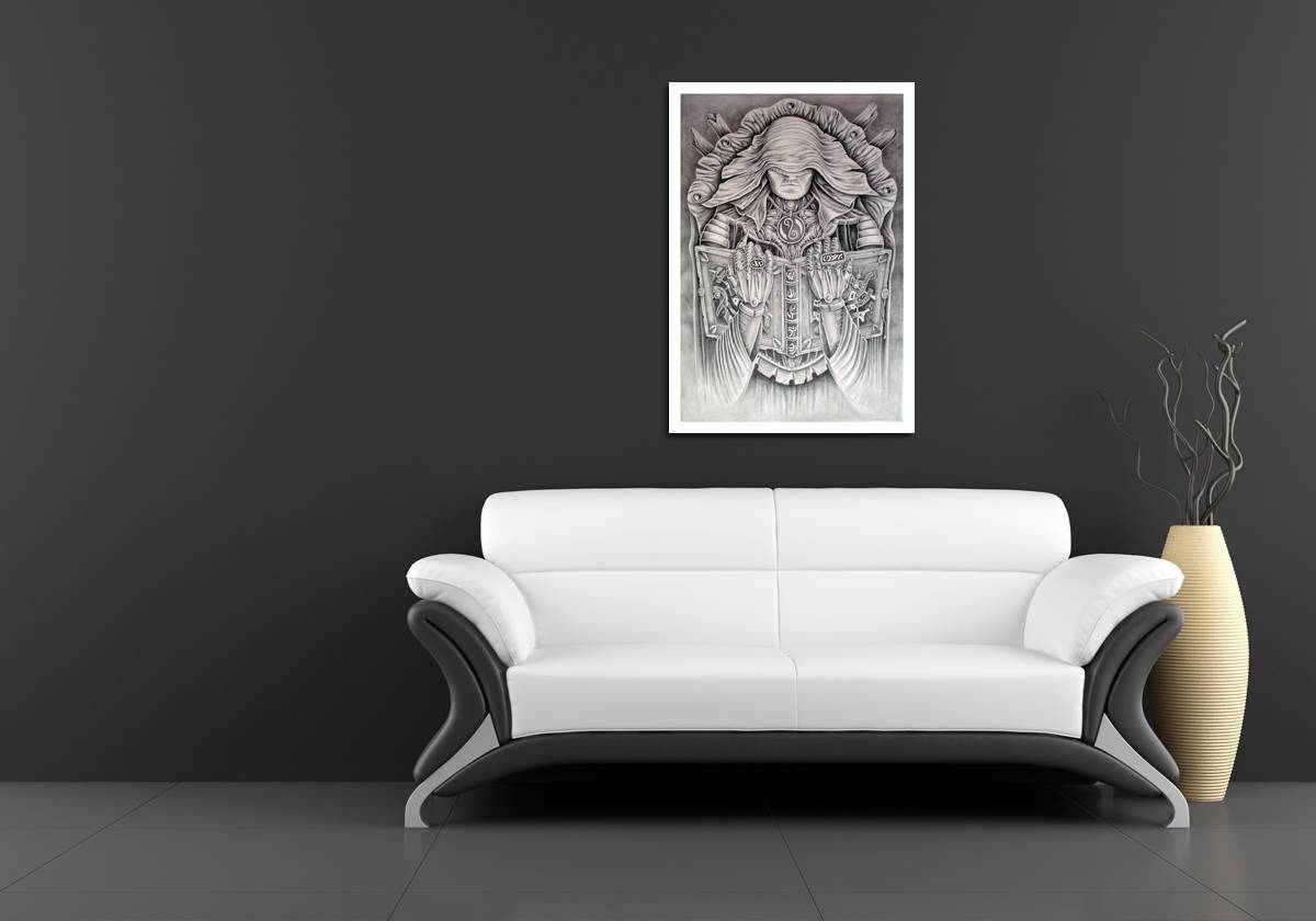 2012 - Obraz nieobramowany surrealizm rysunek ołówkiem Obraz podpisany na odwrocie