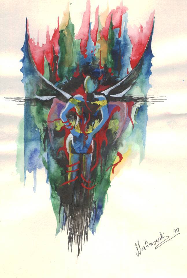 rysunek akwarelą i rapidografem Obraz malowany na papierze Obraz nieobramowany