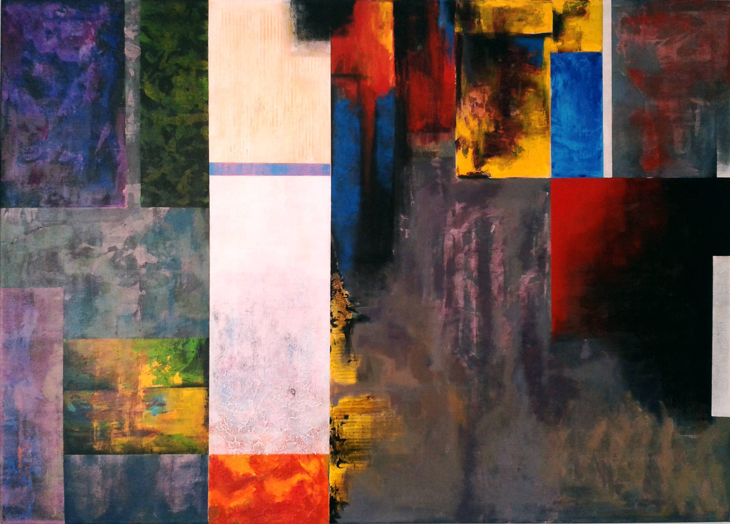 Obraz przyciąga wzrok swoją intensywną grą kolorów, w której dominują jaskrawe żółcie i czerwienie, kontrastujące z głębokim granatem i zielenią. Kształty są prostokątne, poukładane niczym niebanalne puzzle, a każdy element zdaje się walczyć o uwagę. Kompozycja wydaje się chaotyczna, ale w tej pozornie przypadkowej układance kryje się porządek, intrygujący i niemal hipnotyzujący. Atmosfera obrazu jest dynamiczna, pełna energii. Nastrój może być różny – dla jednych to chaos, dla innych tętniąca życiem symfonia barw. Artysta zastosował technikę, która może przypominać malarstwo abstrakcyjne, z wyraźnymi pociągnięciami pędzla i subtelnymi przejściami tonalnymi. Zastosowane kolory przenikają się, tworząc warstwy niemal jak kłębiące się chmury. Odbiorca może odczuwać zarówno zamęt, jak i zafascynowanie. Ten obraz jest jak nasza codzienność – czasem skomplikowana, ale zawsze pełna niespodzianek. Czuję, że patrząc na to dzieło, odkrywam „hidden meanings” każdego dnia. Dziecko mogłoby powiedzieć: "To wygląda jak wielka, kolorowa układanka!". W takim stylistycznym pędzie, każdy znajdzie coś dla siebie.