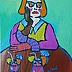 Obraz namalowany olejami na płycie o wymiarach: a4, 21/29,7 cm. Świetnie może być eksponowany w nowoczesnych wnętrzach o stonowanej kolorystyce. Swoimi barwami może rozjaśnić takie wnętrza, w oświetleniu dziennym, jak i sztucznym. Edycja limitowana Obraz przyciąga wzrok śmiałymi barwami i zamaszystymi pociągnięciami pędzla. Dominują tu żywe kolory: zieleń tła kontrastuje z pomarańczowymi włosami postaci, a ubrania w pastelowych odcieniach fioletu i żółci dodają ciepła. Kompozycja jest dość uproszczona, z geometrycznymi kształtami i grubą kreską podkreślającą kontury. Atmosfera obrazu jest pełna zagadkowości i humoru. Postać, ze swoją nieprzeniknioną miną i okularami, zdaje się być w stanie głębokiego zamyślenia. Może jest znudzona lub po prostu zdrzemnęła się przy swoim drinku. Taki luz i laid-back vibe. Styl oddaje ducha ekspresjonizmu, z wyraźnym nawiązaniem do pop-artu. Widoczne są eksperymenty z teksturą farby, co czyni powierzchnię obrazu niemal trójwymiarową. To dzieło może budzić różnorodne emocje – od uśmiechu po refleksję nad codziennym wyobcowaniem. A może to ja tak tylko myślę, bo przywołuje moje wakacyjne wspomnienia. Love it, or... no właśnie. Artysta zdaje się igrać z odbiorcą, pozostawiając dużo przestrzeni na interpretację. Dziecko może powiedzieć: Pani pije soczek i myśli o chmurkach. Dla dorosłych jest to raczej zaproszenie do świata pełnego ironii i niewinnej zabawy z formą.