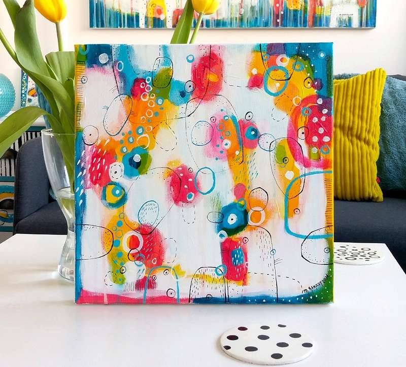 Łąki kwietne, akryl/ płótno, wym. 30x30cm, 2021r. Obraz ręcznie malowany, sygnowany z przodu, opisany na odwrocie. Boki zamalowane, gotowy do powieszenia.