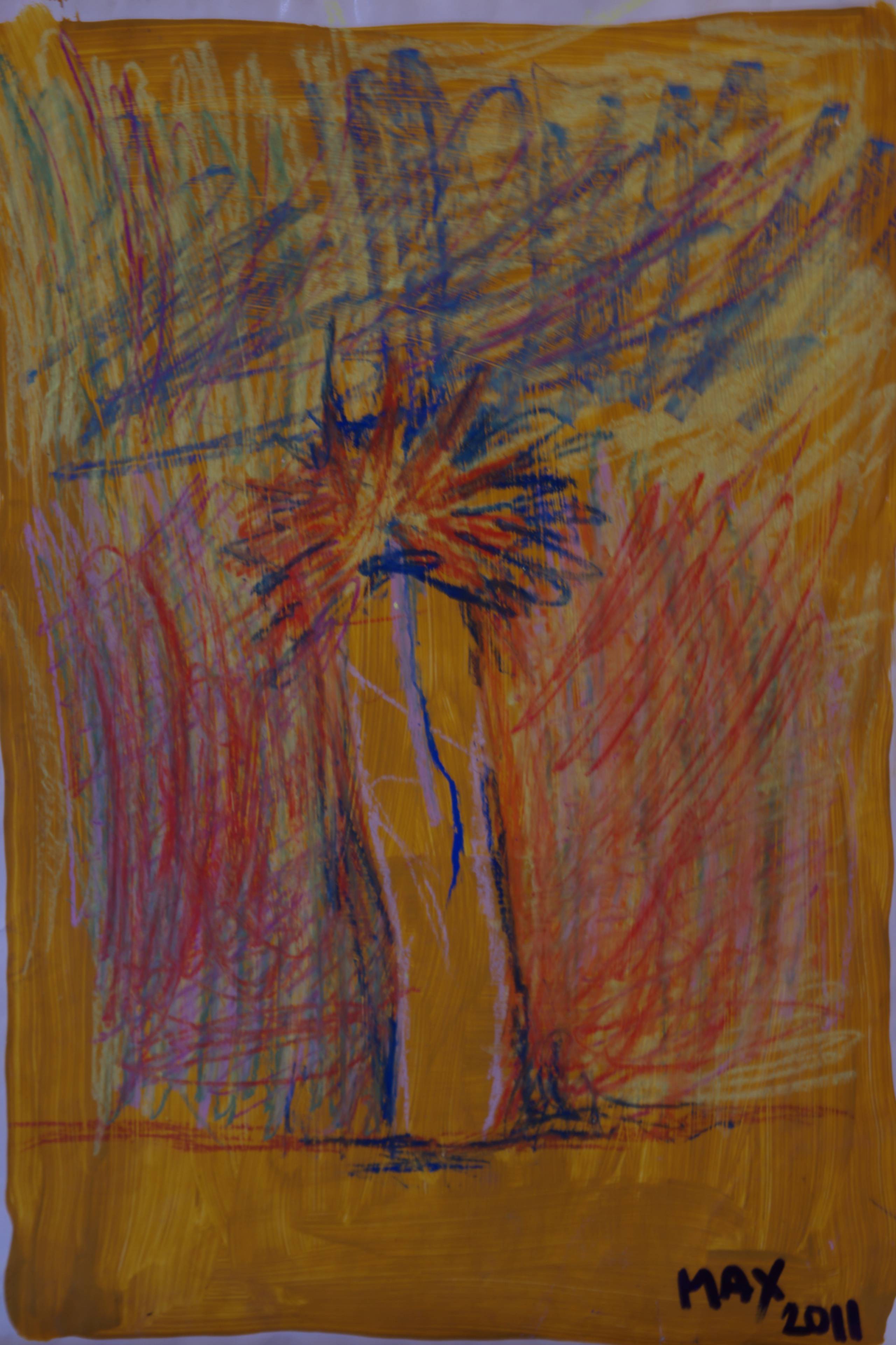 Ten obrazek to pełen energii wybuch barw. Dominujący żółty tło przyciąga wzrok swoją intensywnością. Na pierwszym planie widać mieszaninę czerwieni, niebieskiego i różowego – kształty przypominają coś jakby postać z rozpostartymi rękami. Wiatru w włosach się czuje! Niewyraźne linie i chaotyczne smugi nadają kompozycji ekspresywny charakter. To jakby artysta próbował uchwycić moment pełen ruchu i ekspresji. Atmosfera obrazu jest z jednej strony niepokojąca, z drugiej fascynująca. Czuć w nim coś z ruchu i dynamiki codziennego życia. Technika malarska pełna jest impastu i swobody, autor nie boi się prowokować. Emocje? No, to jest jak rollercoaster uczuć – od euforii po zamyślenie. Patrząc na ten obraz ma się ochotę zawołać „What a mess!” ale w takim pozytywnym sensie. Ten obraz może pobudzać do refleksji, ale równie dobrze zachęca do snucia własnych historii i interpretacji. Odbiorca może poczuć się jak dziecko odkrywające nieznane. "Patrz mamo, ile kolorów!" – mogłoby zawołać dziecko. Pomyśl, ile skrytych emocji kryje się za tymi liniami i kolorami. Może to obraz wewnętrznego konfliktu, a może radości z życia? Każdy odbiera go inaczej. I to jest piękne. Każdy szczegół malarski zdaje się zapraszać do rozmowy z obrazem. Fascynujący chaos.