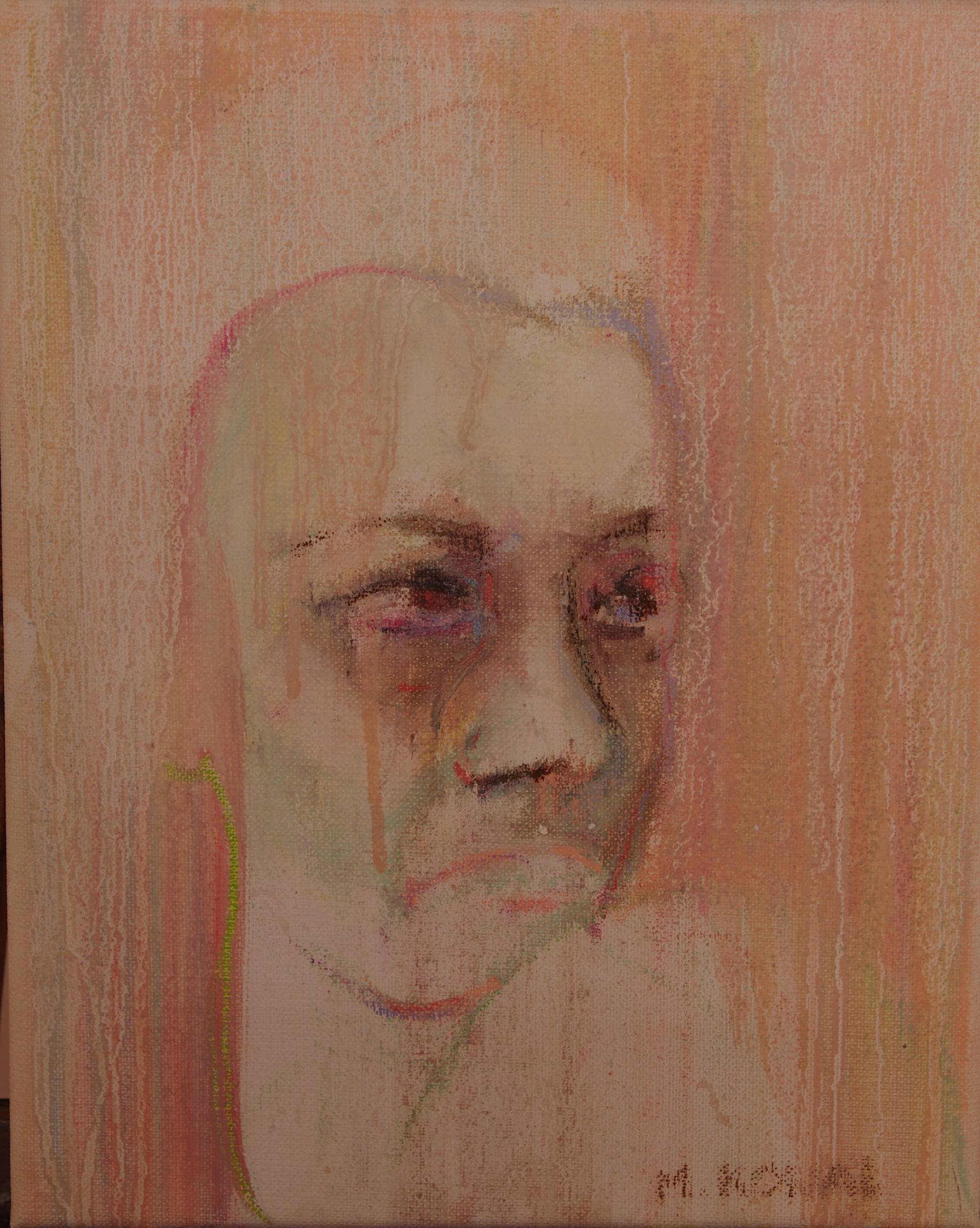 Obraz przedstawia portret o bardzo subtelnej i delikatnej kolorystyce. Dominują tu ciepłe odcienie pomarańczu i różu. Twarz jest ledwie zarysowana, jakby zanurzona w świetle, które rozmywa kontury. Wzrok osoby na portrecie wydaje się zamyślony, a może smutny? Jest coś fascynującego w tej niejednoznaczności. Artysta posłużył się techniką akwarelową, co widocznie wpływa na miękkość i płynność kształtów. Rozlane kolory sugerują emocje, które jak mgiełka unoszą się nad obrazem. Atmosfera jest melancholijna, pełna cichego spokoju. To taki "dreamy" klimat, który trochę budzi tęsknotę za czymś nieuchwytnym. Kropelki farby spływające po płótnie przypominają łzy. Czyż to nie jest niezwykłe, jak można użyć koloru do wyrażenia uczuć? Siedmioletnie dziecko mogłoby powiedzieć: Pan jest smutny i chce się przytulić. Właśnie to budzi najwięcej emocji u odbiorcy – to delikatne, powiedziałbym, intymne spotkanie z drugim człowiekiem. Styl obrazu jest nieformalny, może nawet trochę niedbały, co dodaje mu autentyzmu. Artysta skupił się na emocjach, a nie na perfekcji. Patrząc na ten obraz, zastanawiam się, jakie historie kryją się za jego spojrzeniem. To dzieło pozostawia wiele do interpretacji i właśnie dlatego tak silnie oddziałuje na odbiorcę.