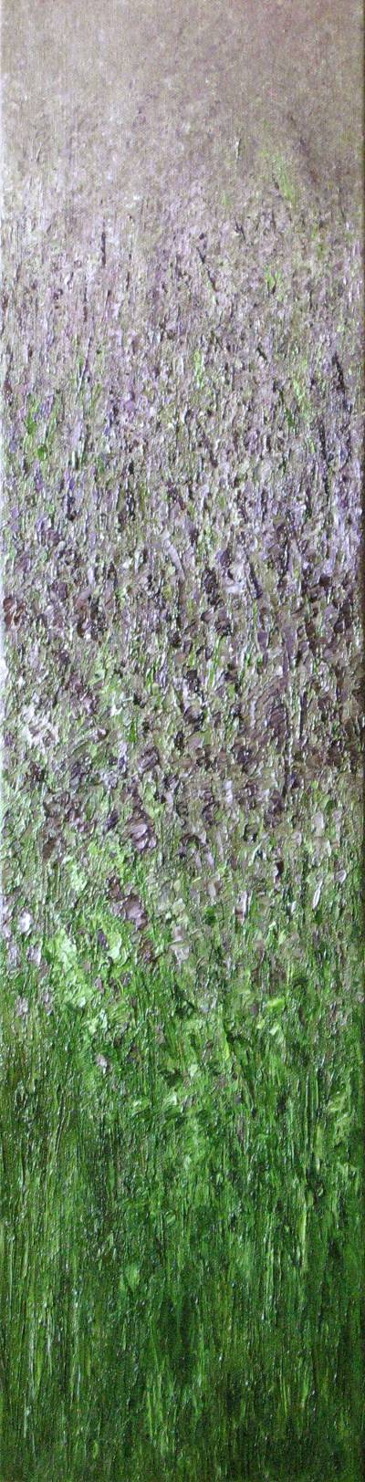 Olej na płótnie, motywy wypukłe, dominujące lila zieleń