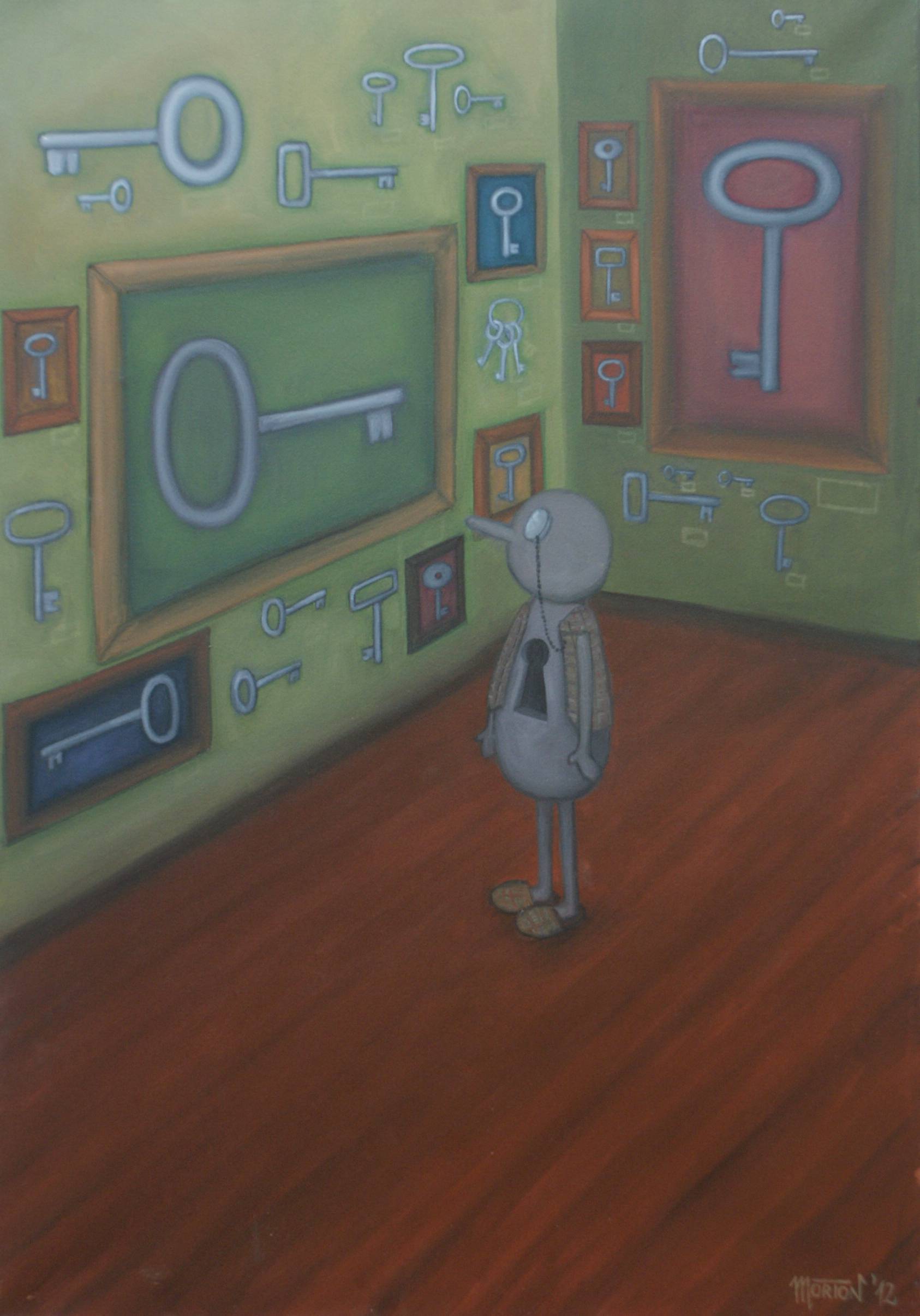 Każdy człowiek pragnie być szczęśliwy. Dla każdego to słowo oznacza coś innego.Każdy, gdzie indziej szuka, spotyka szczęście. Obrazy są ilustracjami symbolicznymi o charakterze dekoracyjnym. Ukazują różne sposoby poszukiwania szczęścia.Symbolem szczęścia są klucze, a pragnienia otwór na brzuszku ludzika. Postać poszukującego przedstawiona jest bezosobowo oraz nie wyraża uczuć, by każdy oglądający niezależnie od płci i wieku mógł się z nim utożsamić i po swojemu określić emocje jakie wzbudza oglądana scena w nim samym. Obraz po dwóch wystawach indywidualnych w Lublinie i Warszawie.