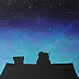 Obraz przedstawia nocne niebo, rozgwieżdżone, pełne migoczących punktów świetlnych, które kontrastują z ciemnym, granatowym tłem. Na pierwszym planie widzimy sylwetkę pary siedzącej na dachu, otuloną tajemniczym cieniem. Czarne, jednolite kształty kontrastują z jasnością gwiazd i nadają scenie intymny, spokojny nastrój. To prawie jak chwila "magic". Tło jest subtelnie kolorowane odcieniami granatu i fioletu, co dodaje obrazowi głębi i sprawia, że patrząc na niego, czujemy się jak w kosmicznej przestrzeni. Artysta zastosował technikę malowania pędzlem z dbałością o delikatne przejścia kolorów. Dzięki temu, obraz zdaje się żyć własnym życiem, kiedy poruszają się na nim plamy barw. Troszkę jak obrazy widziane przez kalejdoskop. Obraz może budzić do refleksji nad naszą małością wobec wszechświata, ale jednocześnie podkreślać piękno zwykłych chwil spędzonych w towarzystwie ukochanej osoby. Czujemy spokój, romantyzm i tęsknotę za nocnymi rozmowami pod gwiazdami. Spojrzawszy na tę scenę, trudno nie poczuć ciepła w sercu i lekkiego zadumania. Ta prosta, ale pełna emocji kompozycja przypomina nam o znaczeniu bliskości, a także o ogromie wszechświata, który nas otacza. Maluch siedzący na dachu mógłby powiedzieć: "Tam są wielkie gwiazdy, a ja jestem taki mały!". To prawdziwa uczta dla oczu i duszy, która pozostawia odbiorcę z poczuciem głębokiego ukojenia i marzeń.