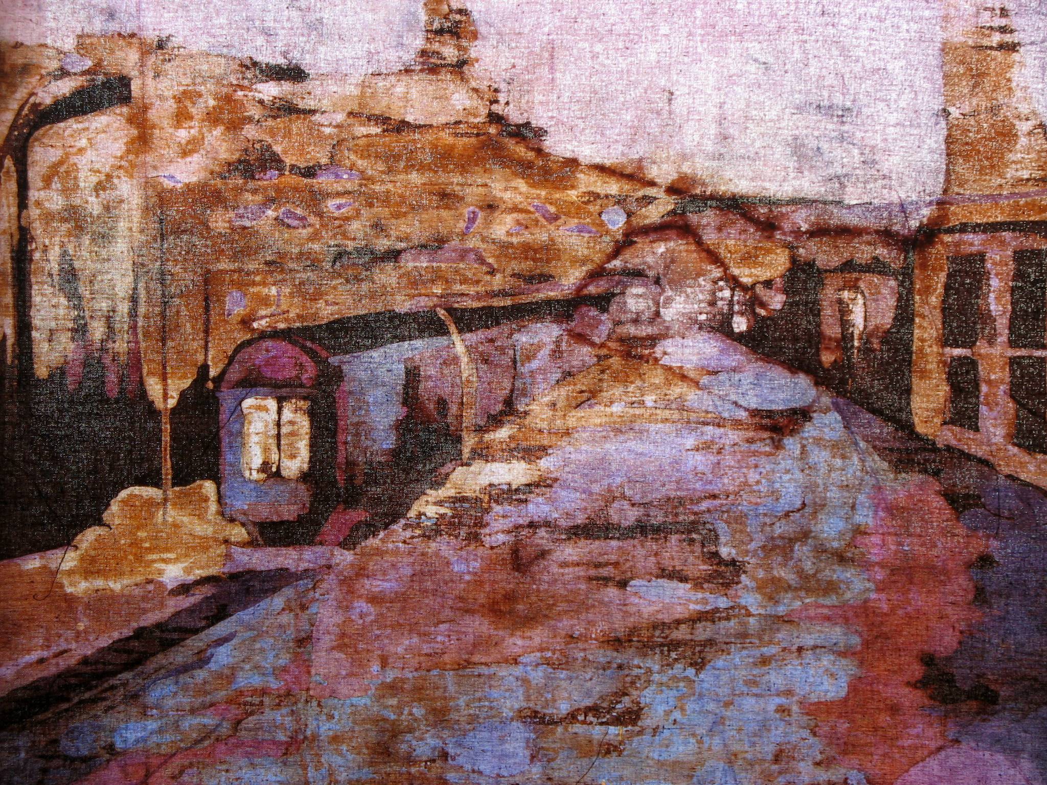 Na obrazie dominuje intrygująca mieszanka kolorów. Ciepłe brązy i odcienie purpury przeplatają się z delikatnym różem i błękitem. Patrząc na kompozycję można odnieść wrażenie, że artysta posłużył się techniką rozmycia, tworząc nieco enigmatyczny obraz miejskiego krajobrazu. Można dostrzec zarys budynków i okna, które migoczą tajemniczym światłem. Atmosfera jest nostalgiczna, jakbyśmy spoglądali na coś z przeszłości, coś co już dawno minęło. Ten obraz emanuje tajemnicą i skłania do refleksji. Może przypominać stare zdjęcie znalezione na strychu, pełne historii i emocji. Artysta użył technik przypominających impresjonizm. Całość wydaje się być zamglona, niewyraźna, co dodaje efektu dreamlike. Obraz może wywoływać u odbiorcy różnorodne uczucia. Dla niektórych może być to melancholia, dla innych spokój. Na przykład ja myślę o dzieciństwie i wycieczkach do babci, kiedy patrzę na te subtelne kolory i rozmyte kształty. Moja siostra widzi tutaj magiczny krajobraz, jak z bajki! A cóż można o tym powiedzieć po angielsku? Perhaps it's a journey into the unknown. To dzieło jest małym okienkiem do świata pełnego marzeń i wspomnień.
