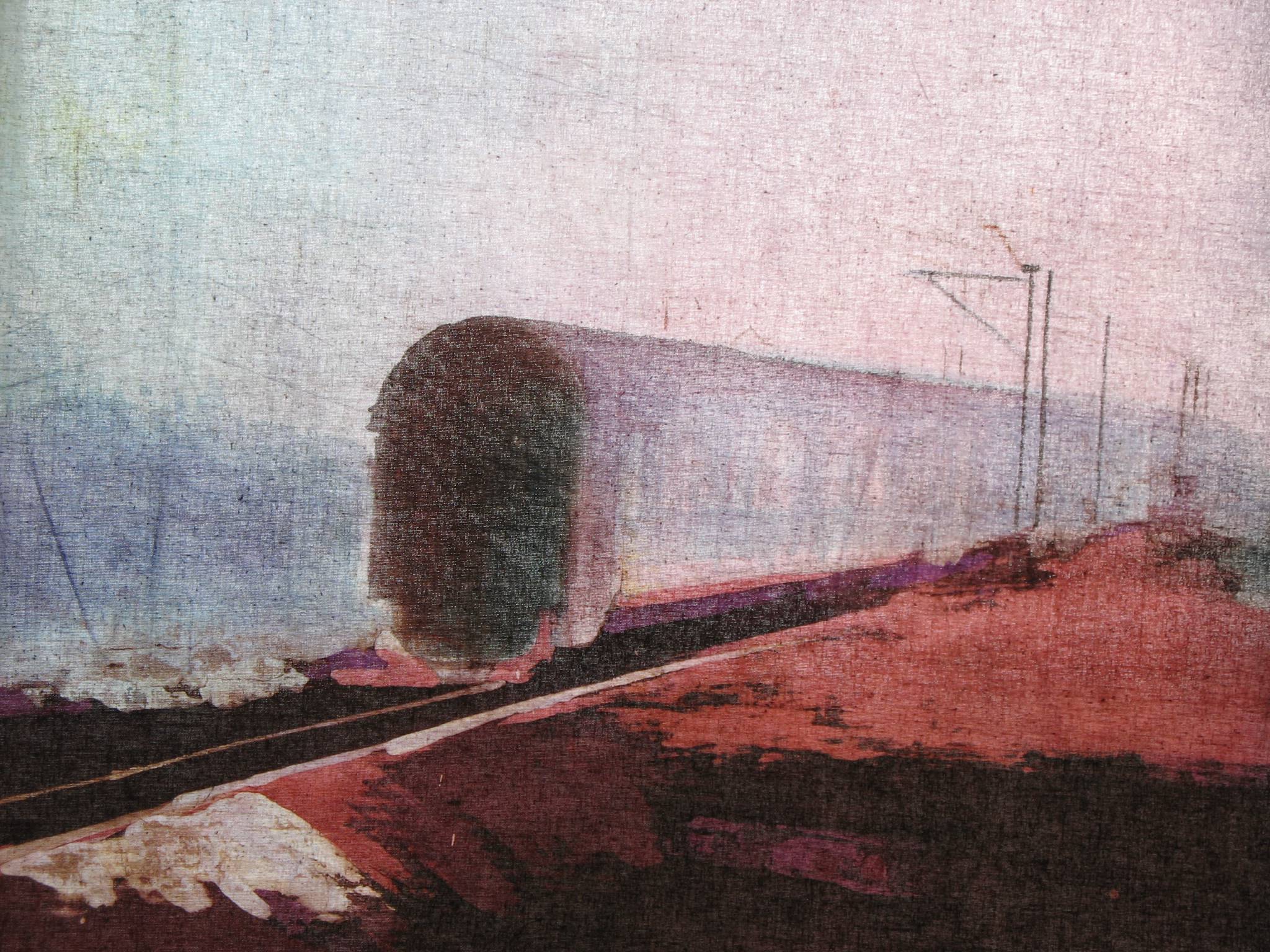 Obraz przedstawia pociąg mknący przez tunel w rozmytych tonacjach kolorystycznych. Dominują tu ciepłe odcienie czerwieni i brązów, kontrastujące z chłodniejszymi błękitami i fioletami. Kompozycja prowadzi wzrok od pierwszego planu, gdzie ścieżka torów jest zarysowana bardziej wyraźnie, aż do oddalającego się pejzażu. Całość emanuje tajemniczym, nieco nostalgicznym nastrojem. Jest jak sen, w którym rzeczywistość miesza się z wyobraźnią. Styl obrazu zdaje się być impresjonistyczny, artyście udało się uchwycić chwilę w ruchu za pomocą delikatnych pociągnięć pędzla. Zastosowana technika rozmycia sprawia, że patrzący może poczuć się jak w ruchu, jakby sam zaraz miał odpłynąć w dal. Obraz może wywołać uczucie zadumy, tęsknoty za nieznanym, ale i ciepłe wspomnienia dawnych podróży. Ale fajnie, mogę iść tam pociągiem? Pomyślałby pewnie 7-latek, patrząc na to dzieło. Rozmyte kształty nie pozwalają na jednoznaczne interpretacje, każdy może odnaleźć coś własnego. Może to być symbol podróży życia, gdzie kierunek nie jest całkiem jasny, ale jednak gdzieś prowadzi. Pozwól sobie na chwilę escape from reality i zanurz się w tej wizji. Obraz przyciąga, intryguje i zaprasza do odkrywania jego ukrytych znaczeń.