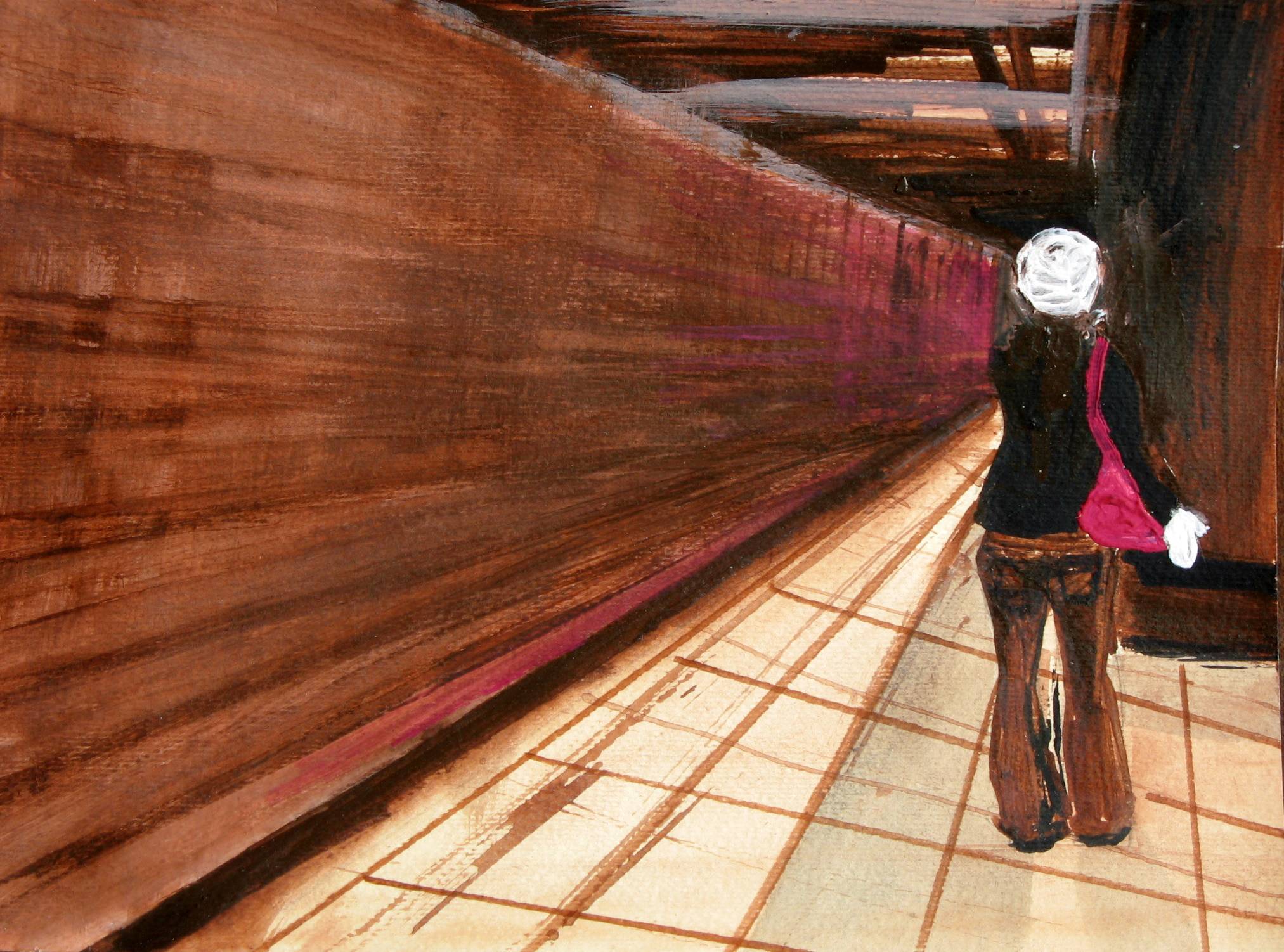 To dzieło przyciąga wzrok intensywnymi, ciepłymi barwami, głównie brązami i czerwieniami, które wypełniają przestrzeń tunelu. Prosta kompozycja, z samotną postacią z plecakiem, wprowadza do obrazu pewien "mystery". Artysta zastosował technikę akwareli lub akrylu, co widać po miękkich, rozmytych krawędziach i niemal impresjonistycznym podejściu do szczegółów. Znajomy niepokój, który towarzyszy pustym miejskim przestrzeniom, przenika tu atmosferę. Jakby czas się zatrzymał, a świat zewnętrzny gdzieś zniknął. Patrząc na to, czuję się trochę zagubiony, ale też zaintrygowany. Postać stoi z kieszonką od torebki przy jasnym tle, co sprawia, że jej obecność jest subtelna, lecz wyraźna. Może to opowieść o codziennej podróży lub wewnętrznej refleksji w drodze do celu. Ten obraz to jak spacer przez miasto we mgle, gdzie można się zgubić, ale też odkryć coś nowego. Kiedy na to patrzę, przypomina mi się, jak sam kroczyłem podobnymi korytarzami. Ciekawy miks samotności i odkrycia. A dziecko mogłoby powiedzieć: "Ta osoba chyba idzie do szkoły!" Stwarza to uczucie, że każdy krok może prowadzić do czegoś nowego. Magicznego.