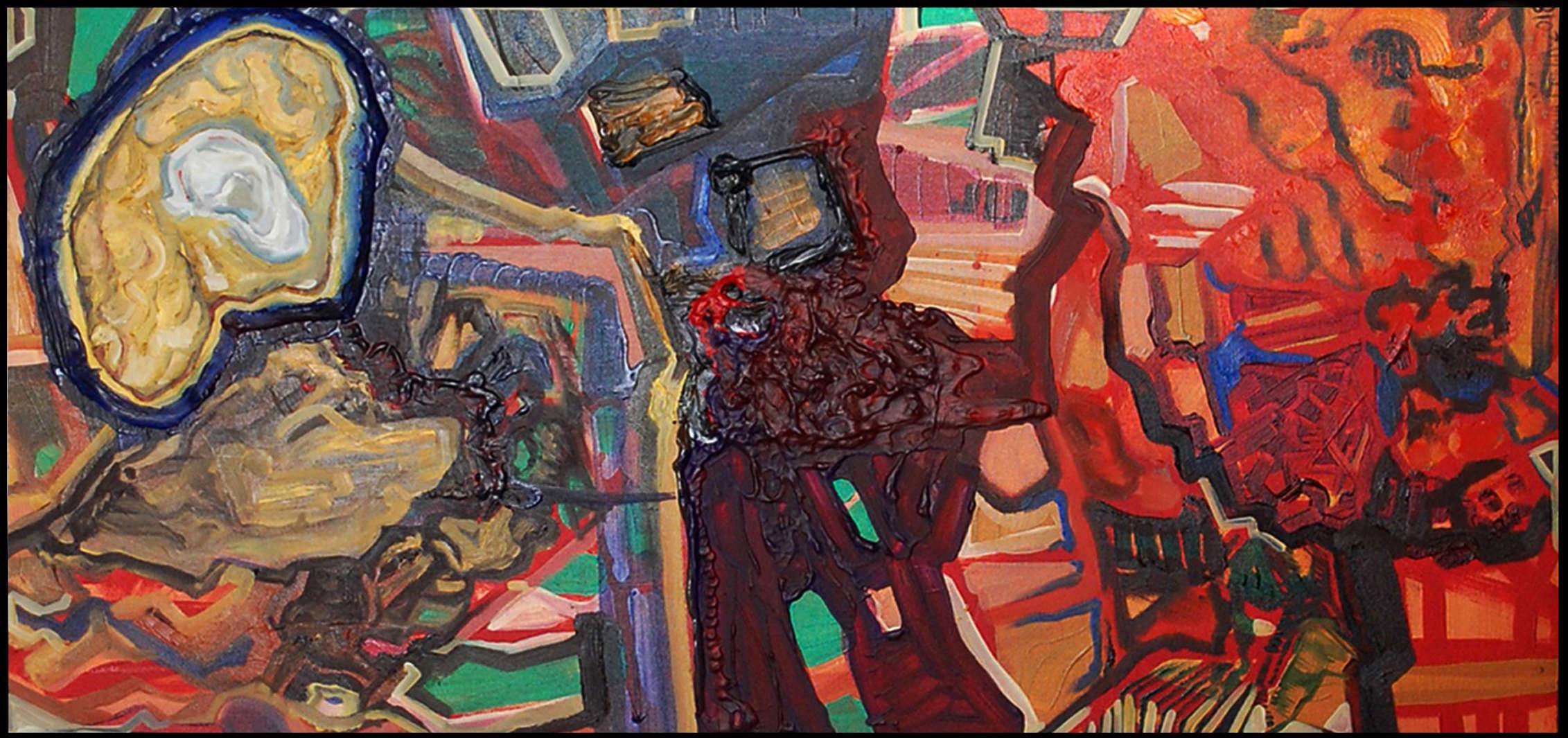 Obraz z cyklu abstrakcyjno - figuratywnych form 'Wpływy' powstały w latach 2018/ 2019 w Warszawie. Inspirowany analizą dzieła Jana Balbierz 'Nowy kosmos' traktującego filozofię Augusta Strindberga. 'Rozwój gatunku odbywa się poprzez konekcje większych i bardziej aktywnych mózgów z mózgami mniejszymi, które zostają nauczone za pomocą sugestii czy przeniesienia myśli. Harmonia duszy'. Obraz Sygnowany w prawym dolnym rogu M.M.K oraz z tyłu. Płótno lniane. Technika mieszana olej/ akryl. Przyklejony fragment obrazu/ projektu plakatu muzycznego 'Ucho Vangogha'. Widoczna struktura szpachli. Zwieńczony czarnym, dwu centymetrowym, akrylowym obramowaniem, boki również zamalowane. Zabezpieczonym satynowym matowym werniksem. Obraz pełen żywych i intensywnych barw, emanujący silnym natężeniem synestetycznym, biologicznym oraz filozoficznym ożywi wnętrze biura, gabinetu, hotelu, restauracji, pracowni muzycznej, mieszkania.
