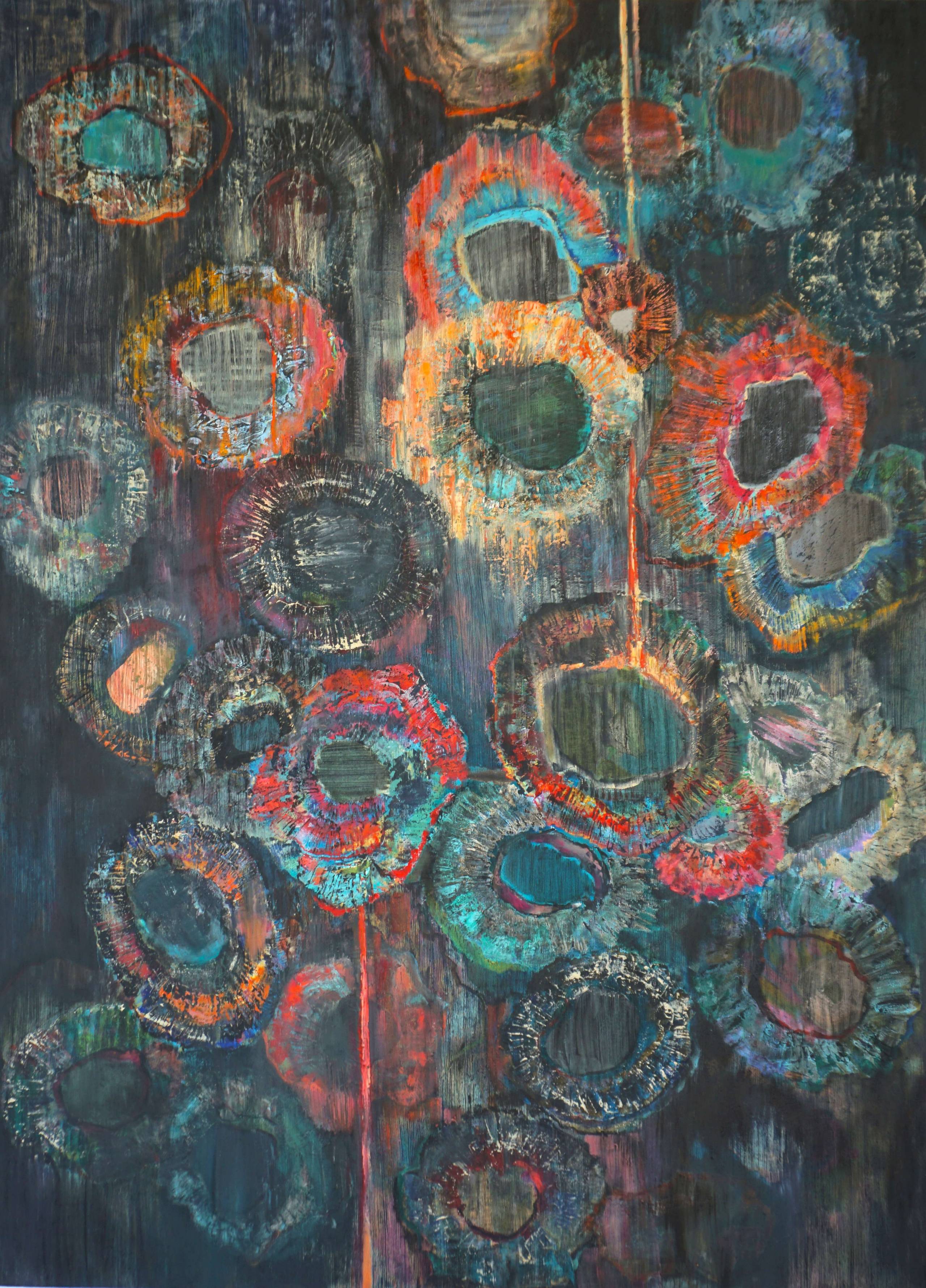 WIELKOFORMATOWY OBRAZ OLEJNY Z CYKLU ZIELNIK INSPIROWANY FRANCUSKIMI ARRASAMI Z PRACOWNI TKACKICH W ARRAS. PRACA KATALOGOWA, EKSPONOWANA NA WYSTAWIE "ZIELNIK" W WARSZAWIE W 2021 ROKU. BARDZO ORYGINALNE PŁÓTNO O CIEKAWEJ FAKTURZE, UDAJĄCEJ OSNOWĘ A CAŁA PRACA PRZYPOMINA STARY, RĘCZNIE TKANY DYWAN NA KTÓRYM ODBIJA SIĘ HISTORIA STĄPAJĄCYCH PO NIM LUDZI. DO REPREZENTACYJNYCH I WYJĄTKOWYCH WNĘTRZ, ZARÓWNO PRYWATNYCH JAK I PUBLICZNYCH.