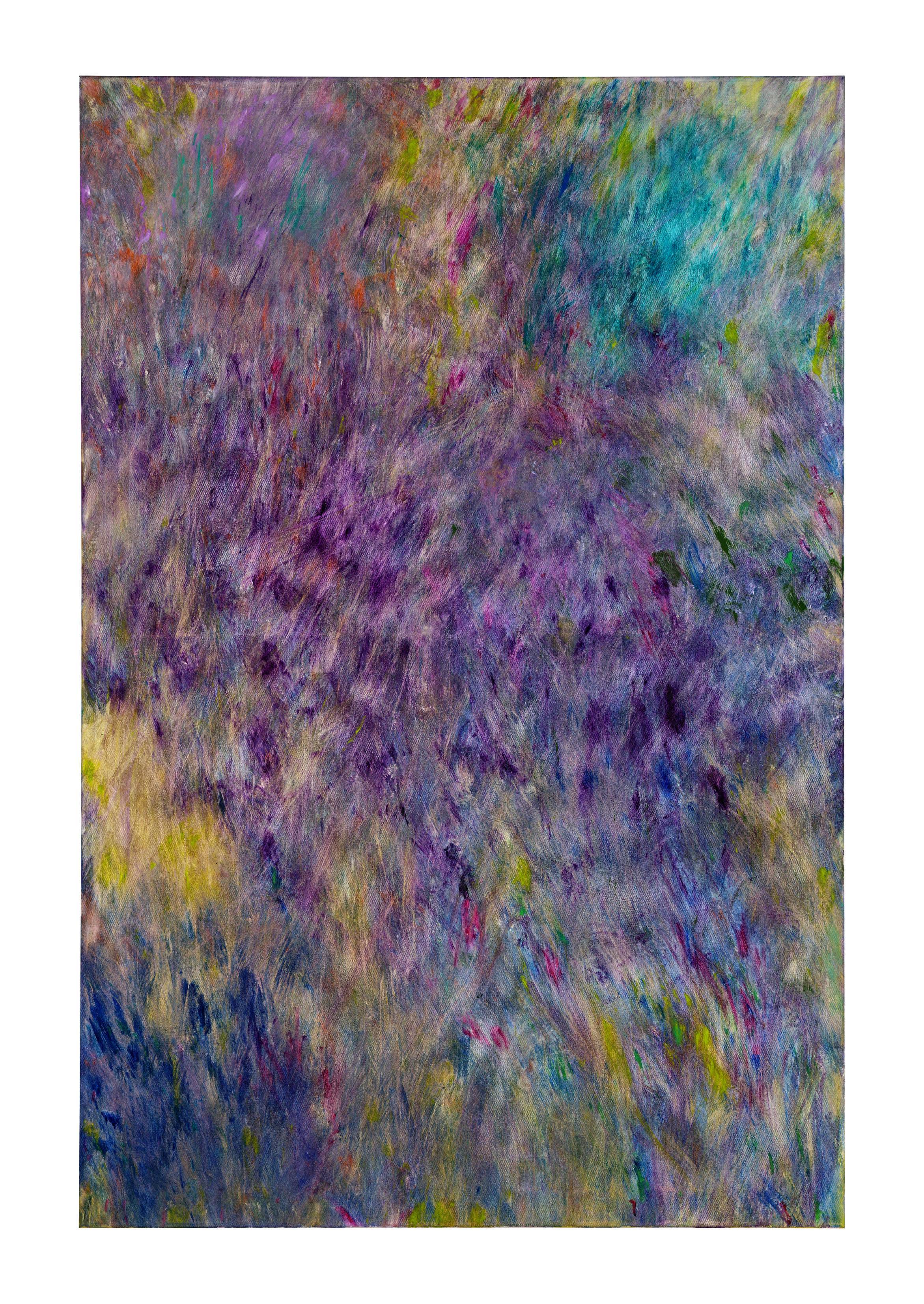 Ten obraz, pełen ruchu i barwnych plam, przypomina senne marzenia lub spojrzenie przez kalejdoskop. Dominują fiolety i błękity, które tańczą na tle bardziej stonowanych zieleni i żółci. Kompozycja jest dynamiczna, niby wirująca masa kolorów. Coś jak burza, ale taka bardziej z bajki niż z prawdziwego życia. Klimat obrazu jest nieco mistyczny, jakby zza mgły wyłaniały się postacie z innego wymiaru. Artysta posłużył się techniką impresjonistyczną, tworząc efekt nieprzerwanego ruchu. Pociągnięcia pędzla są wyraziste, nieco chaotyczne, ale o to właśnie chodzi. Wiesz, każda plama ma swoje miejsce, choć z pozoru wygląda na przypadkową. Obraz może wywoływać uczucie spokoju, jednocześnie pobudzając wyobraźnię do odkrywania ukrytych w nim historii. Jak się na to patrzy, można poczuć pewnego rodzaju "flow" – tak, to jest słowo. Może przypominać dzieciństwo, gdy widzieliśmy w chmurach przeróżne kształty, czy to smoki, czy króliki. Ja widzę tam bajkowy las pełen cudów. A co Ty widzisz?