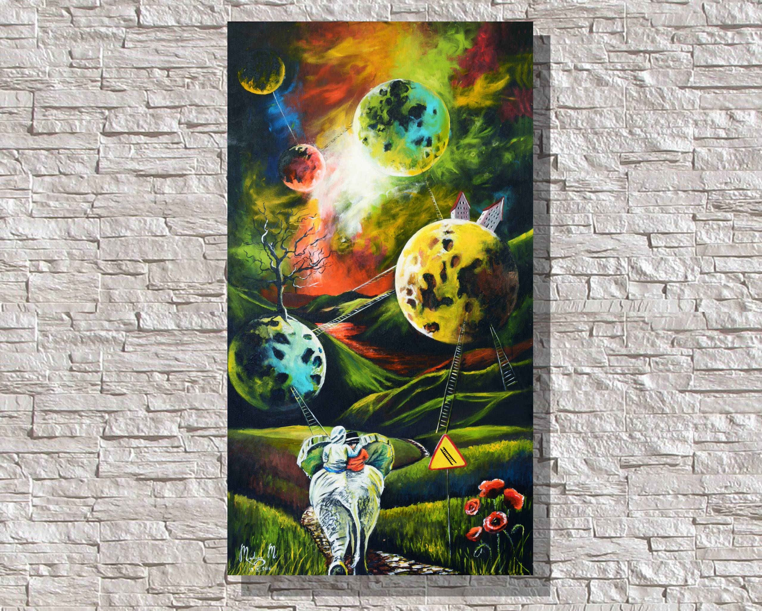 - technika; farby akrylowe - podobrazie; płótno naciągnięte na blejtram - oprawa; boki obrazu zamalowane w sposób dający wrażenie kontynuacji obrazu, co sprawia, że jest gotowy do powieszenia i nie wymaga oprawy - wrażenie 3d. - konserwacja; obraz zawerniksowany (można go przecierać wilgotną ściereczką) - sygnowany w prawym dolnym rogu pseudonimem artystycznym i datą wykonania. Obraz wysyłam bezpiecznie zapakowany, owinięty folią bąbelkową, w twardym tekturowym opakowaniu dopasowanym do wymiaru obrazu. Zapraszam serdecznie do zakupu Martyna Mączka