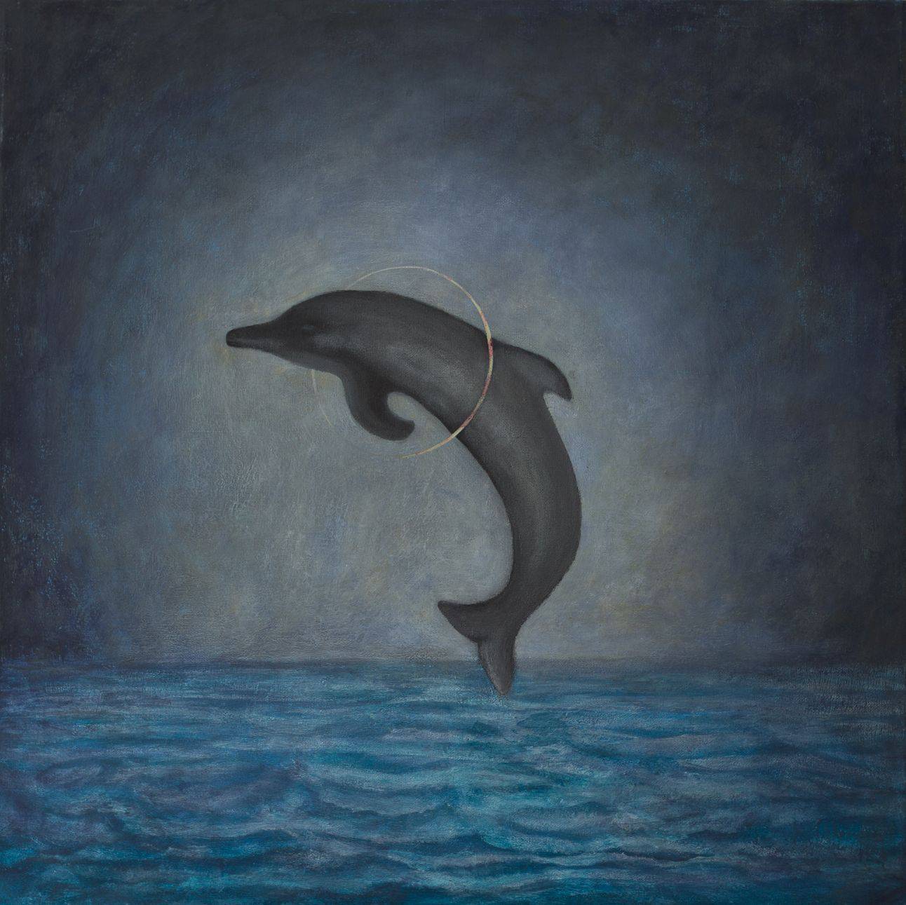 Subtelnie surrealistyczny. Starannie dobrana kolorystykagranatów i srebra. Spokojna, centralna kompozycja oraz dynamika motywu zgrabnie połączone. Obraz wnosi do wnętrza tajemniczą atmosferę.