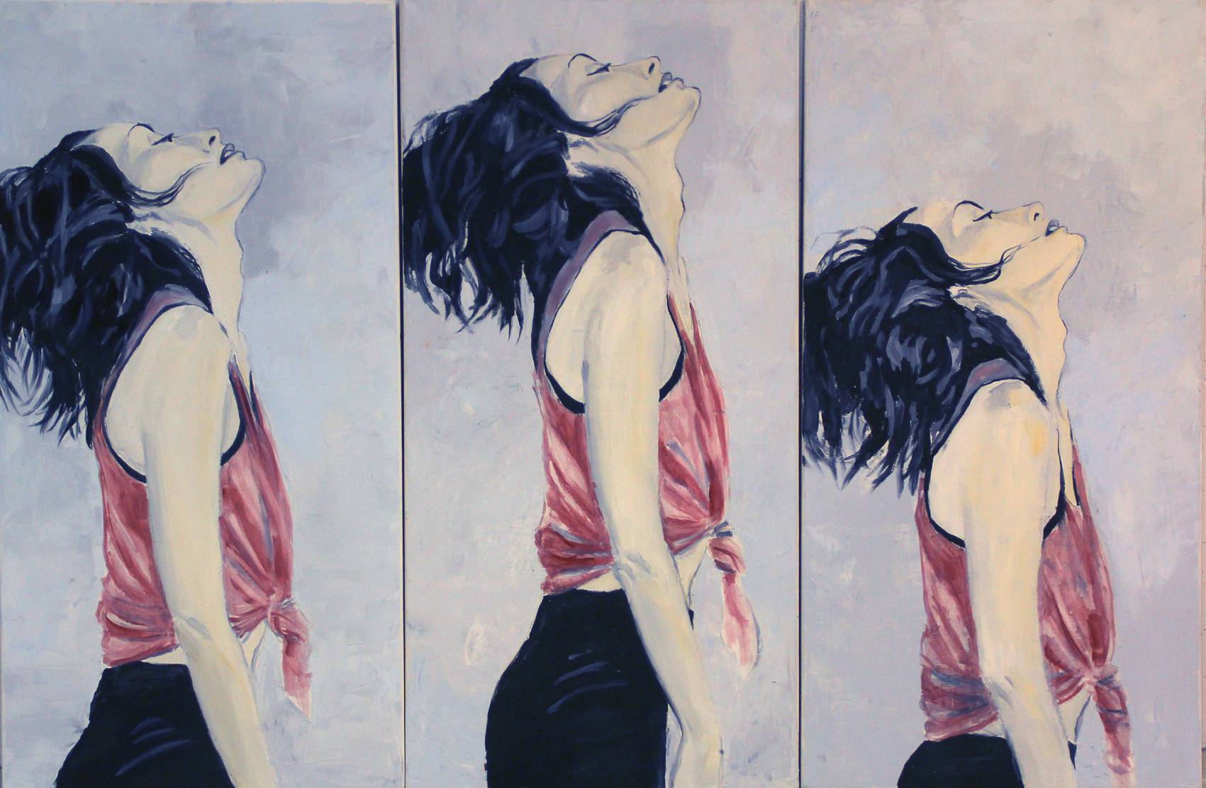 Obraz przedstawia tancerkę, jej fazy ruchu, zawieszenie w przeżywaniu tańca. Tryptyk