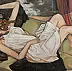 Obraz przedstawia dziewczynę spoczywającą w pozycji leżącej, otuloną delikatnymi materiałami i obłokami subtelnych kolorów. Dominujące odcienie bieli, brązu i czerwieni przenikają się, tworząc harmonijną ale dynamiczną kompozycję. Włosy postaci są jakby ułożone w miękki, płynący wir, kontrastując z ostrzejszymi kształtami falban ubrań. Jest coś magicznego w tej scenie, prawie jakbyśmy byli świadkiem snu na jawie. Atmosfera obrazu jest pełna spokoju i introspekcji, zapraszając widza do refleksji nad ulotnością chwili. Styl artystyczny zdaje się inspirowany surrealizmem z nutką realizmu magicznego. Artysta używa delikatnych pociągnięć pędzla, aby osiągnąć efekt płynnych przejść między elementami. Ten obraz jak ocean – pełen ukrytych głębin emocji. Ma w sobie coś z marzenia, które wszyscy czasem mamy. "Ta pani odpoczywa jak lalka!" powiedziałoby pewnie dziecko. Dla mnie, obraz jest jak whisper zainspirowany chwilą medytacji. Wzbudza ciekawość i zachwyt, że aż zapiera dech w piersiach. Czyż nie jest to magia malarstwa, kiedy zatrzymuje czas na płótnie na wieki?