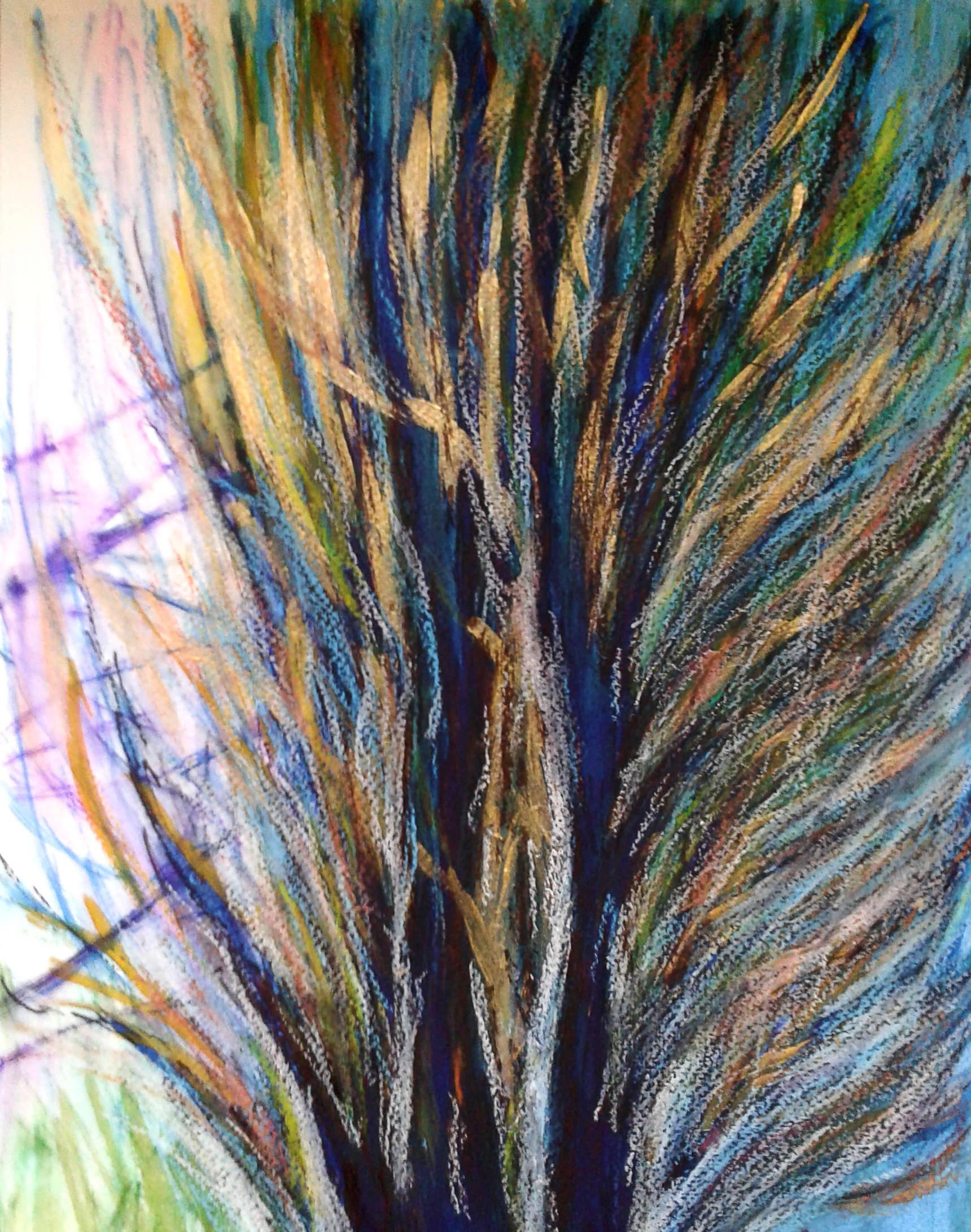 Na obrazie widać wirujący taniec barw. Dominują zielenie, błękity i brązy, które tańczą ze sobą, tworząc dynamiczną kompozycję. Tworzą one wizualną eksplozję, jakby natura sama rozkwitała na kawałku płótna. Linia jest miękka, a kolory przenikają się wzajemnie, tworząc wrażenie płynności i harmonii. Artysta używa techniki, która przypomina pastele, z delikatnymi, choć czasem zdecydowanymi pociągnięciami, co dodaje obrazu głębokości. Atmosfera obrazu jest pełna energii i ruchu; niemal czuje się, jak ta kompozycja wibruje i żyje własnym życiem. Styl przypomina abstrakcyjny ekspresjonizm, gdzie emocje grają pierwsze skrzypce, a forma jest jedynie środkiem do ich wyrażenia. To tak, jakby na chwilę zatrzymać wiatr lub złapać promień słońca w zamkniętym pomieszczeniu.
