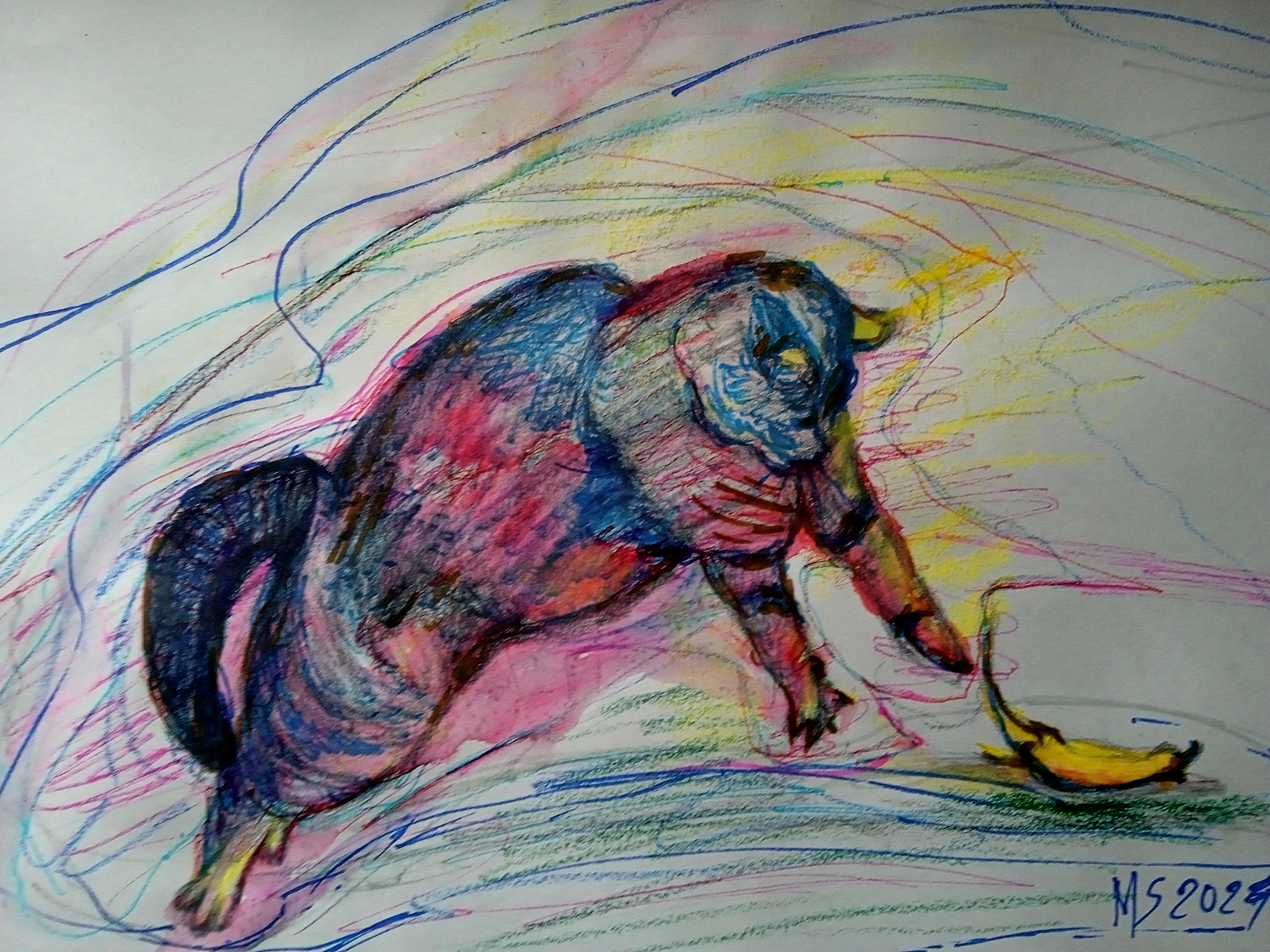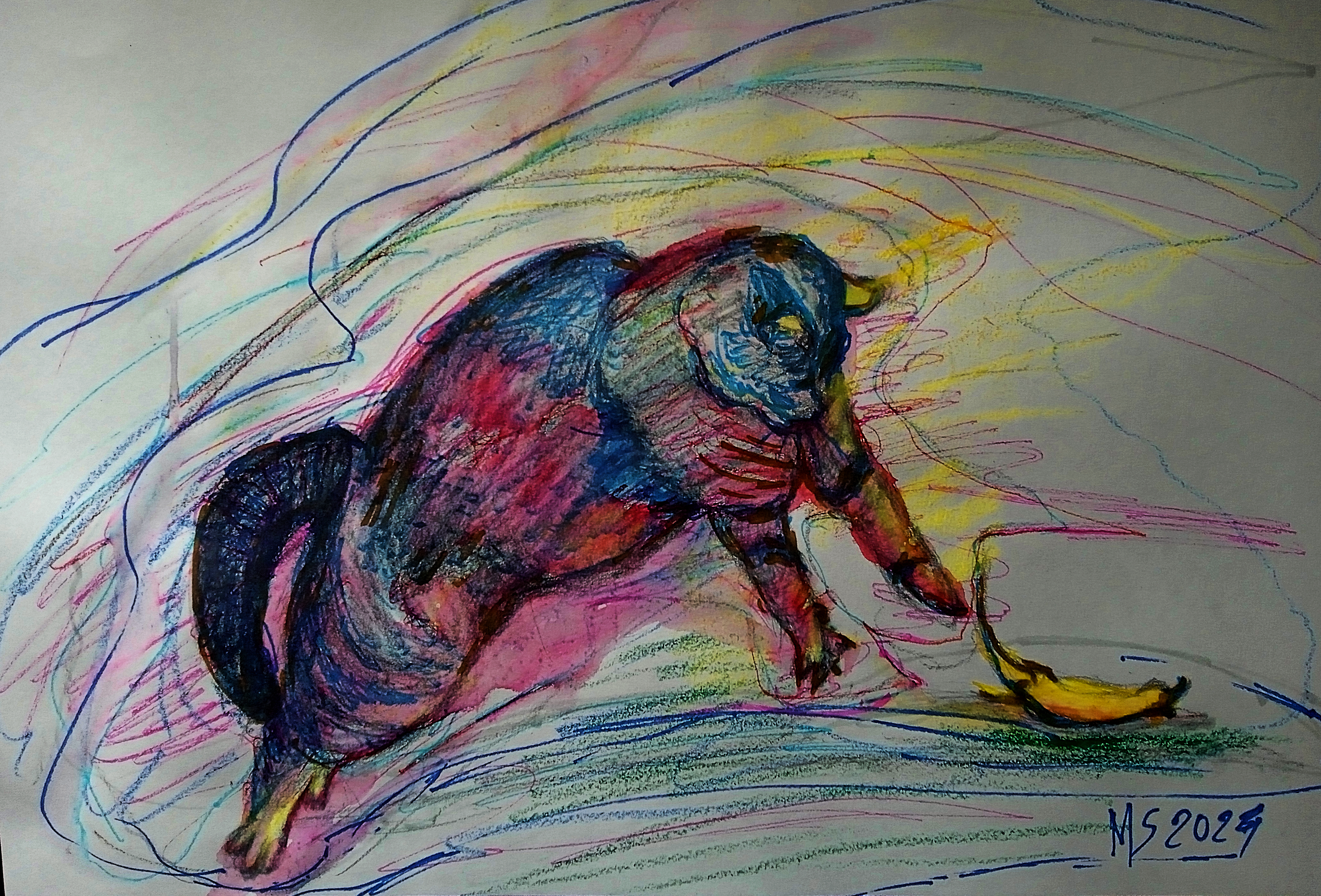 Polowanie szkic mazakami i pastelami, utrwalony werniksem papier szkicowy A3 Marzena Salwowska, 2024