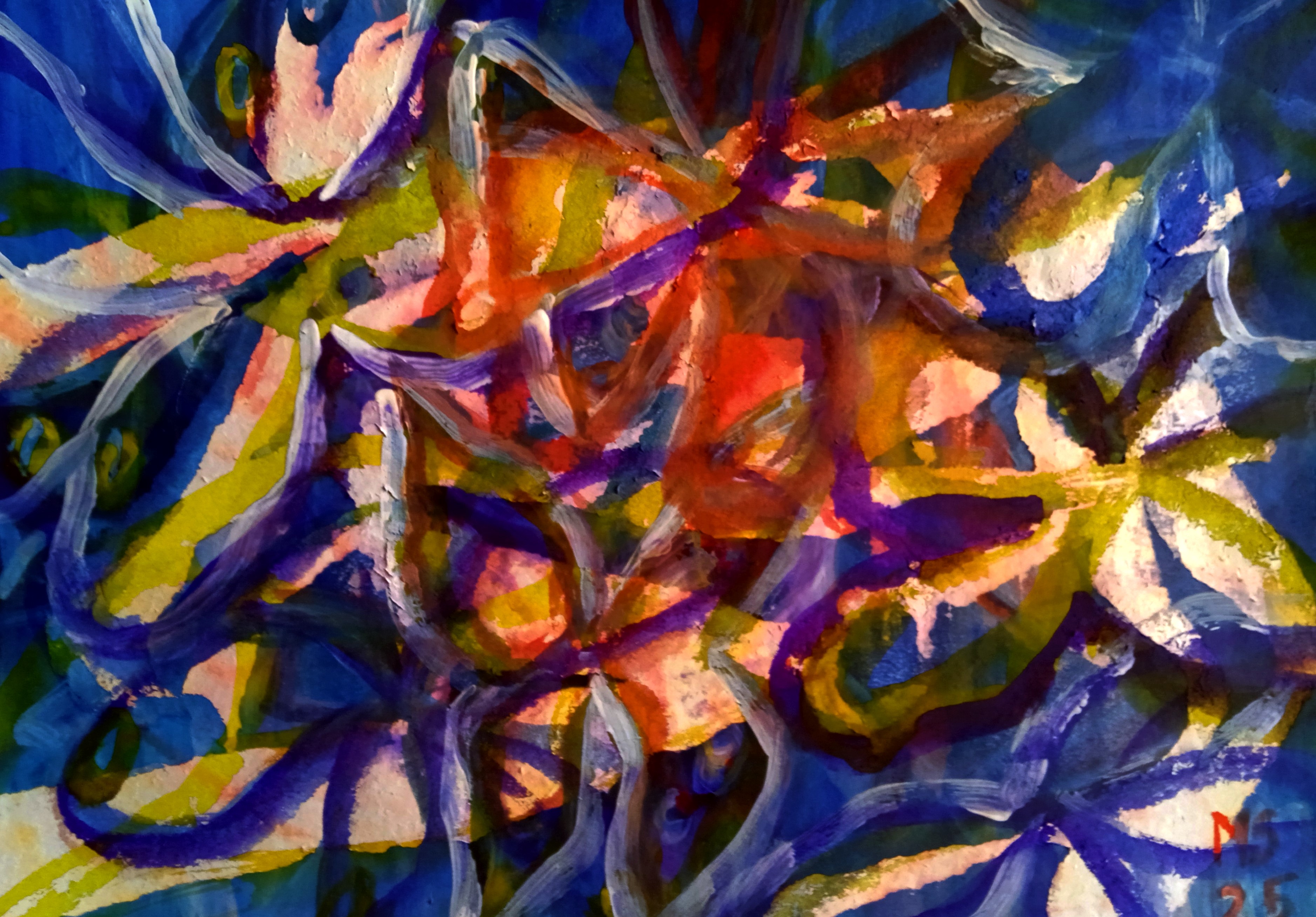 Efekt Tysiąca Motyli technika mieszana - głównie tusze na przecieranym papierze zagruntowanym wcześniej farbami format A3 Marzena Salwowska, 2025 Styl artystyczny zdradza odwagę i niekonwencjonalność twórcy. Pociągnięcia pędzla są spontaniczne, pełne życia. Technika miesza swobodne smugi z precyzyjnymi akcentami kolorów, tworząc dynamiczny kolaż.
