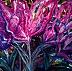 Na obrazie widać dynamiczną eksplozję kolorów, które od razu przyciągają wzrok. Dominują intensywne odcienie różu i fioletu, przeplatane z głębokim błękitem. Kompozycja zdaje się być chaotyczna na pierwszy rzut oka, ale szybko odkrywamy w tej pozornej przypadkowości pewien rytm i symetrię. Wygląda jakby płomienie tańczyły na tle ciemnej nocy. Artysta wykorzystał technikę nakładania farby grubymi pociągnięciami pędzla, co dodaje tekstury i głębi dziełu. Jest w tym obrazie coś nieuchwytnego. Malowidło tętni życiem, budując jednocześnie nastrój tajemniczości.