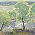 Na obrazie dominują pastelowe odcienie zieleni i błękitu, które tworzą spokojną, wręcz idylliczną scenerię. Drzewa, smukłe i gibkie, falują jakby w rytmie cichego wiatru. Ich liście są pełne życia, a woda odbija ich delikatny taniec, tworząc kalejdoskop refleksji. Kompozycja jest zrównoważona, a wszystkie elementy płynnie łączą się w harmonijną całość. Nastrój obrazu jest spokojny, wręcz marzycielski. Artysta użył tutaj techniki impasto, układając farbę grubą warstwą, co dodaje tekstury i głębi całemu dziełu. Widz mógłby poczuć się jak choćby na chwilę przeniesiony do tego magicznego miejsca. To jest takie miejsce, gdzie czas zdaje się płynąć wolniej. Kolorystyka oraz sposób ukazania światła sugerują późną wiosnę lub wczesne lato. "It's beautiful!" mogłoby powiedzieć dziecko. Można się tu zatrzymać, usiąść na brzegu i poczuć się częścią czegoś większego. Obraz może budzić tęsknotę za naturą i chwilą wytchnienia w codziennym zgiełku.