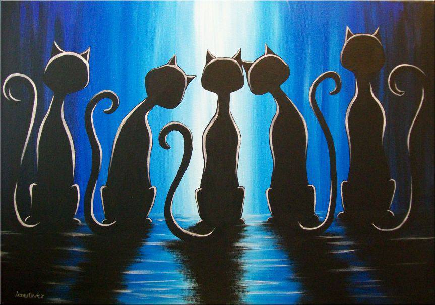 Michał Lenartowicz - BLUE CATS - obraz olejno-akrylowy 50x70cm