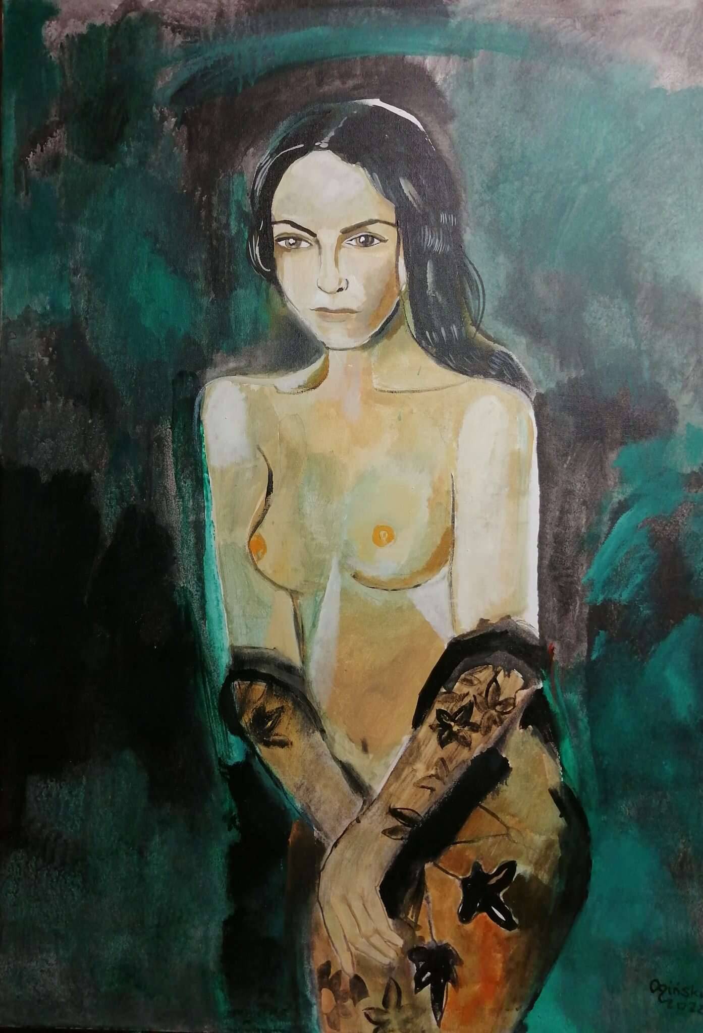 Akt na zielonym tle