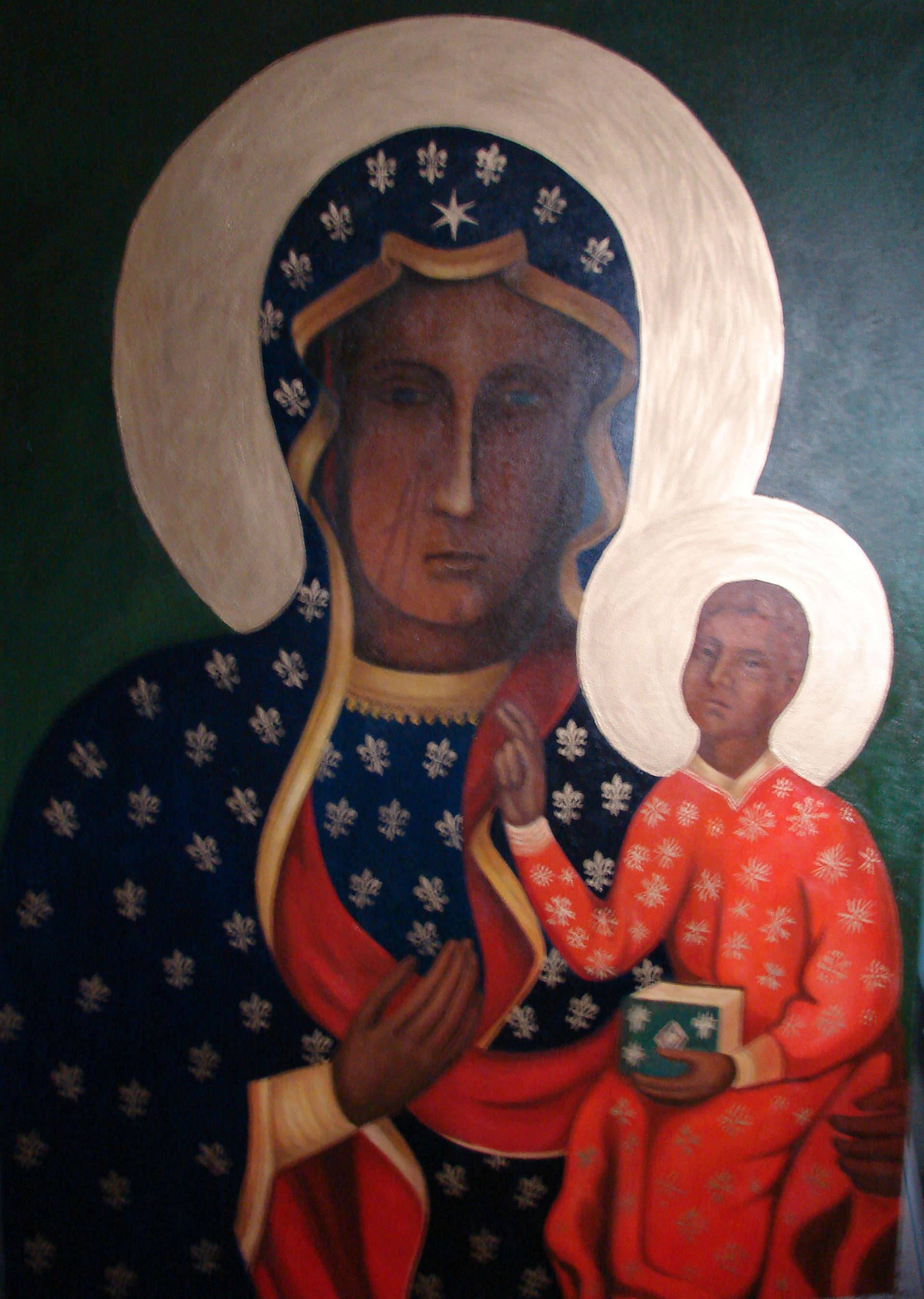 Na obrazie dominuje głęboki niebieski płaszcz ozdobiony delikatnymi wzorami, które przypominają lilie. Postać na złotym tle to Madonna z Dzieciątkiem, emanująca ciszą i dostojnością. Ich twarze, choć spokojne, mają w sobie coś tajemniczego, jakby skrywając niezliczone historie. Obraz jest pełen kontrastów, ciepłe odcienie złota mieszają się z chłodnymi kolorami, tworząc harmonijną kompozycję. Atmosfera wydaje się sakralna, wręcz transcendentalna, przenosząc odbiorcę w czas mistycznych objawień. Ta ikona to prawdziwy masterwork sztuki sakralnej. Artysta wykorzystał tradycyjne techniki bizantyjskie, z charakterystycznym dla tej sztuki płaskim modelunkiem. Kontury są wyraźne, a kolory jednolite, co podkreśla ich staranne zestawienie. Obraz może wywoływać u odbiorcy głębokie emocje, takie jak spokój, refleksja czy poczucie obecności czegoś większego. Dla mnie to jak podróż w czasie, chwila zatrzymania w tym zabieganym świecie. Dzieciak pewnie powiedziałby: "Ooo, to niebo wygląda jak złota bańka!" Można poczuć magię tego, co nieznane i piękne. Obraz może stać się swego rodzaju "window" do duchowego świata.