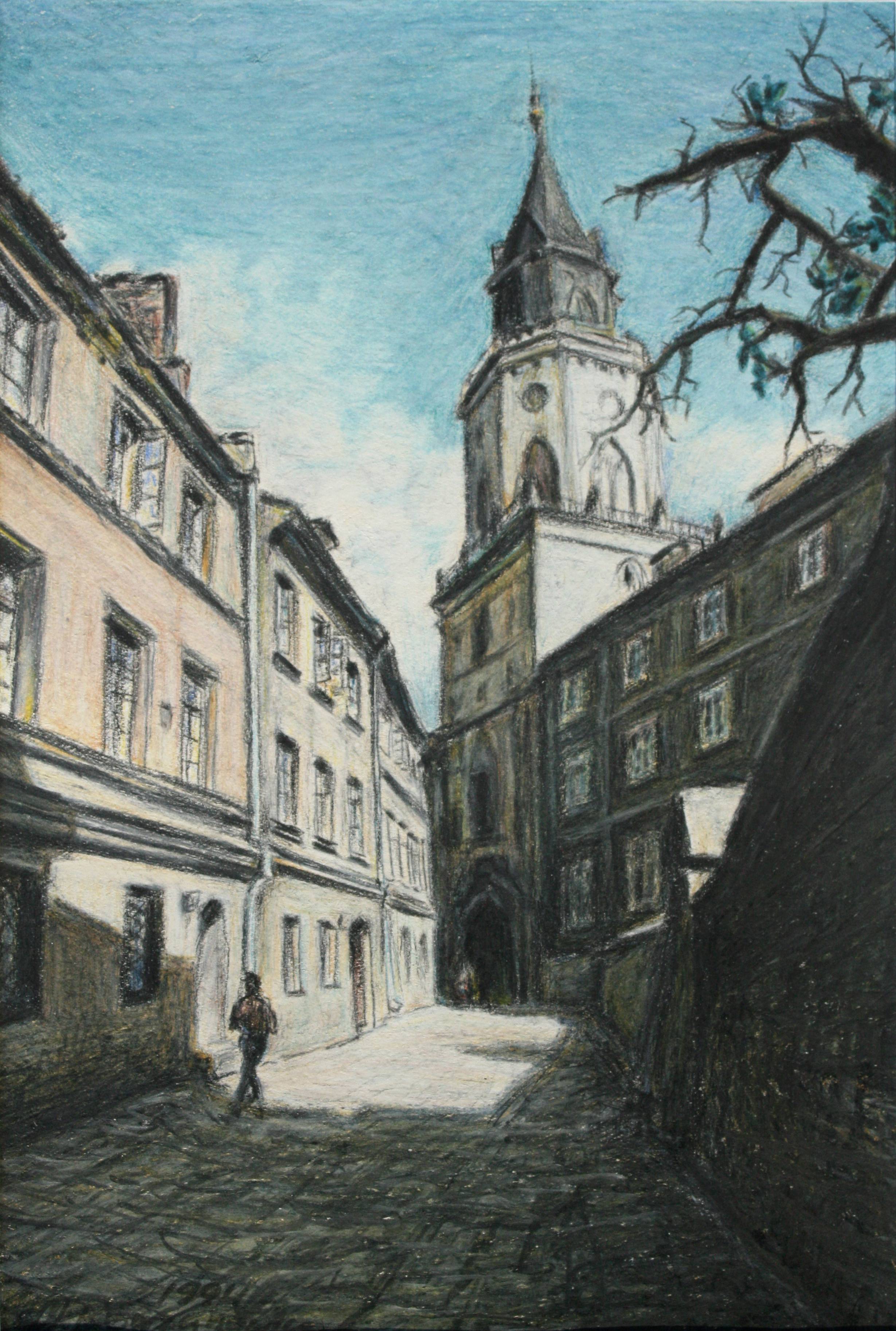 Lublin - Stare Miasto, ulica Jezuicka . Pastel na kartonie, namalowany w 1994 roku.
