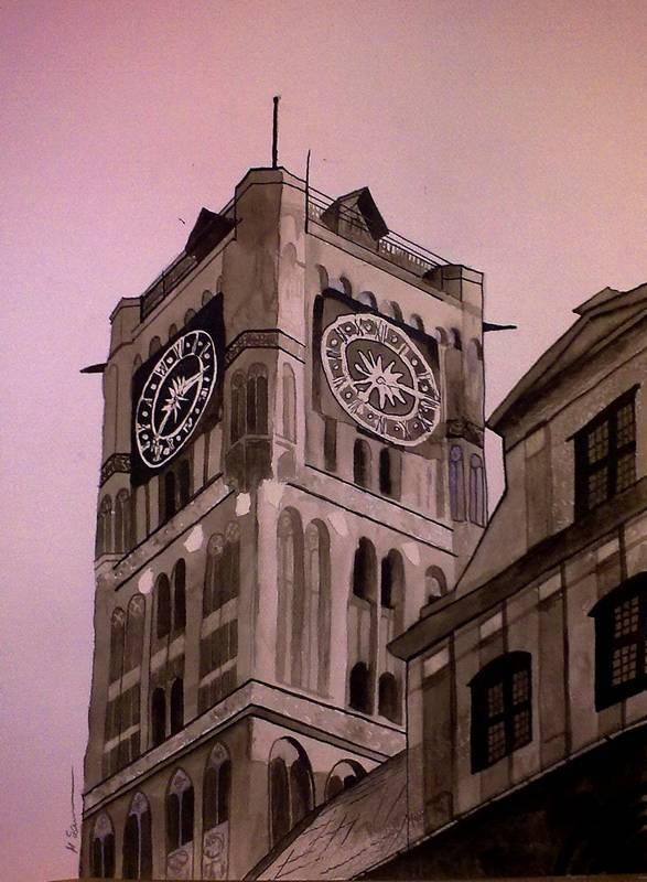 Ratusz Staromiejski w Toruniu – główna budowla świecka toruńskiego Starego Miasta, gotycki budynek powstały etapami w ciągu XIII i XIV w., przebudowany w XVII w. i odbudowany po zniszczeniach bez oprawy sepia technika akwarelowa