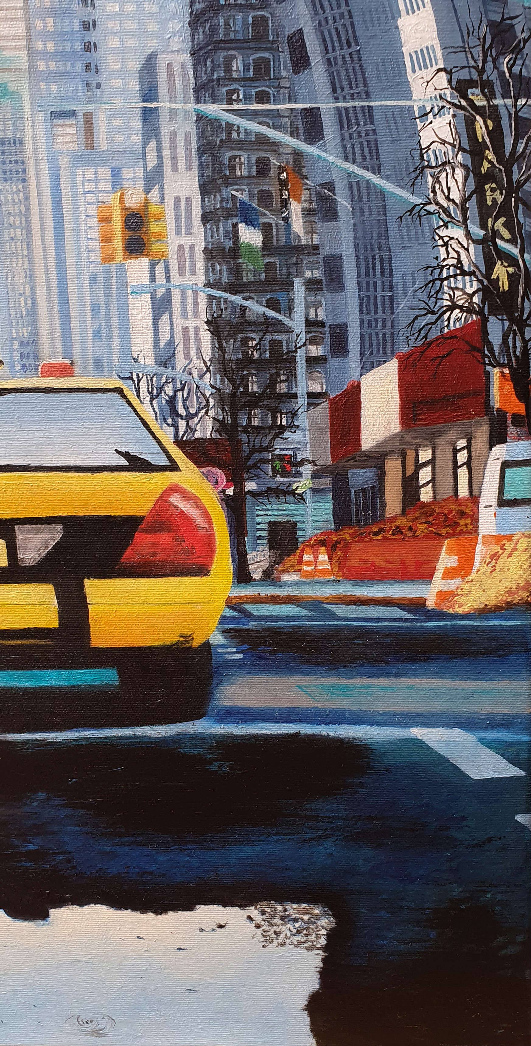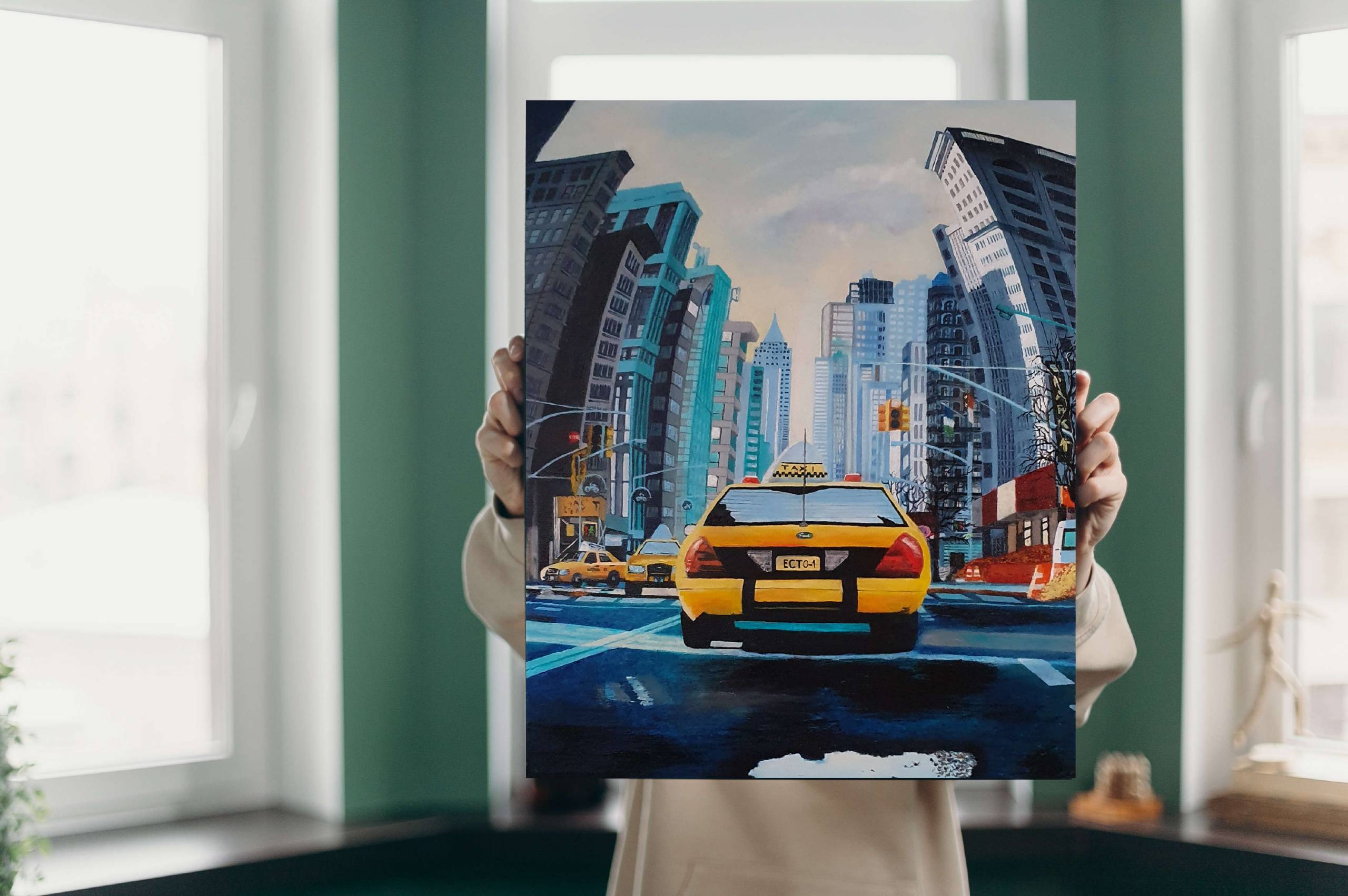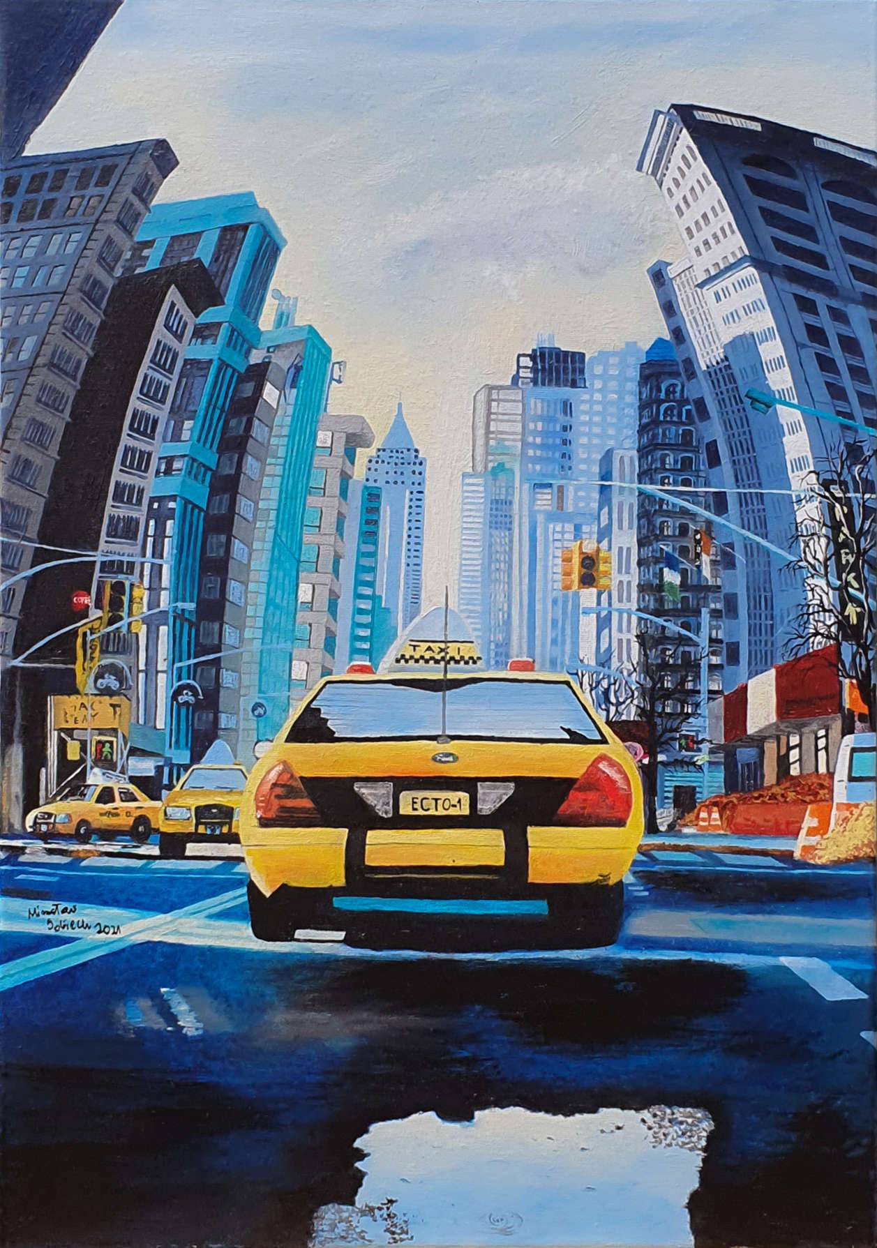 Obraz olejny malowany z zdjęcia Pejzaż miejski New York Obiektyw rybie oko 50x70cm