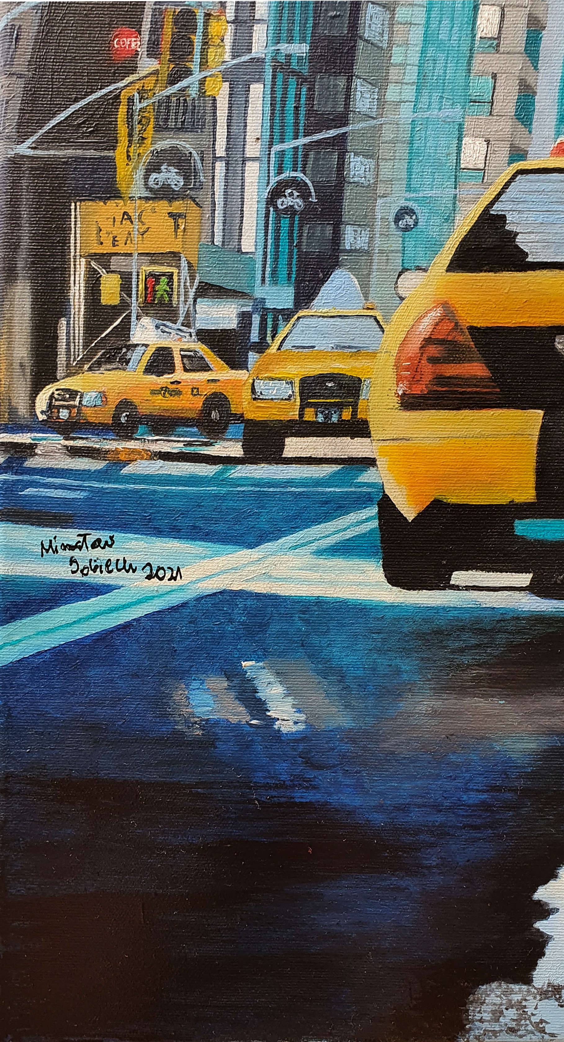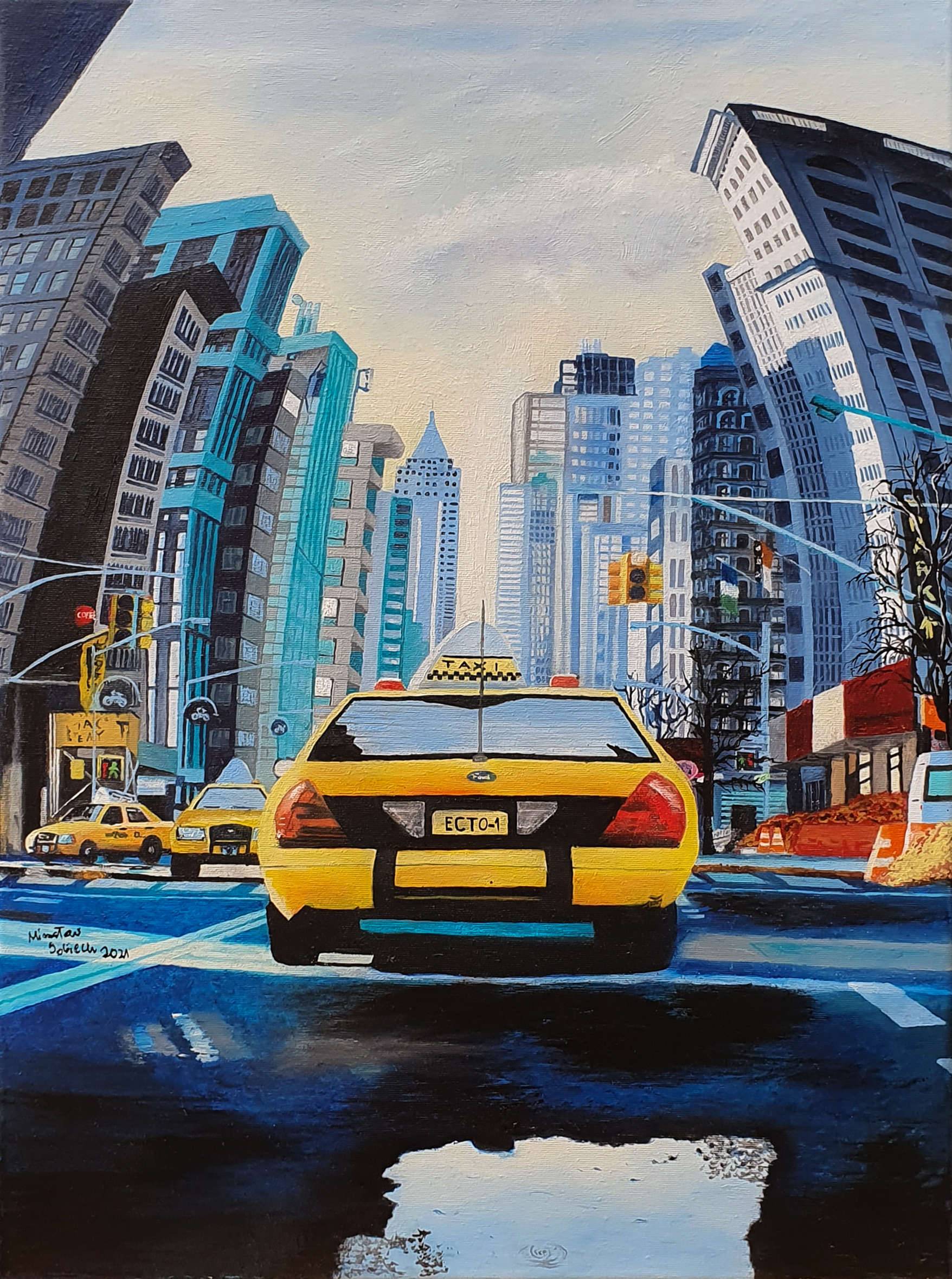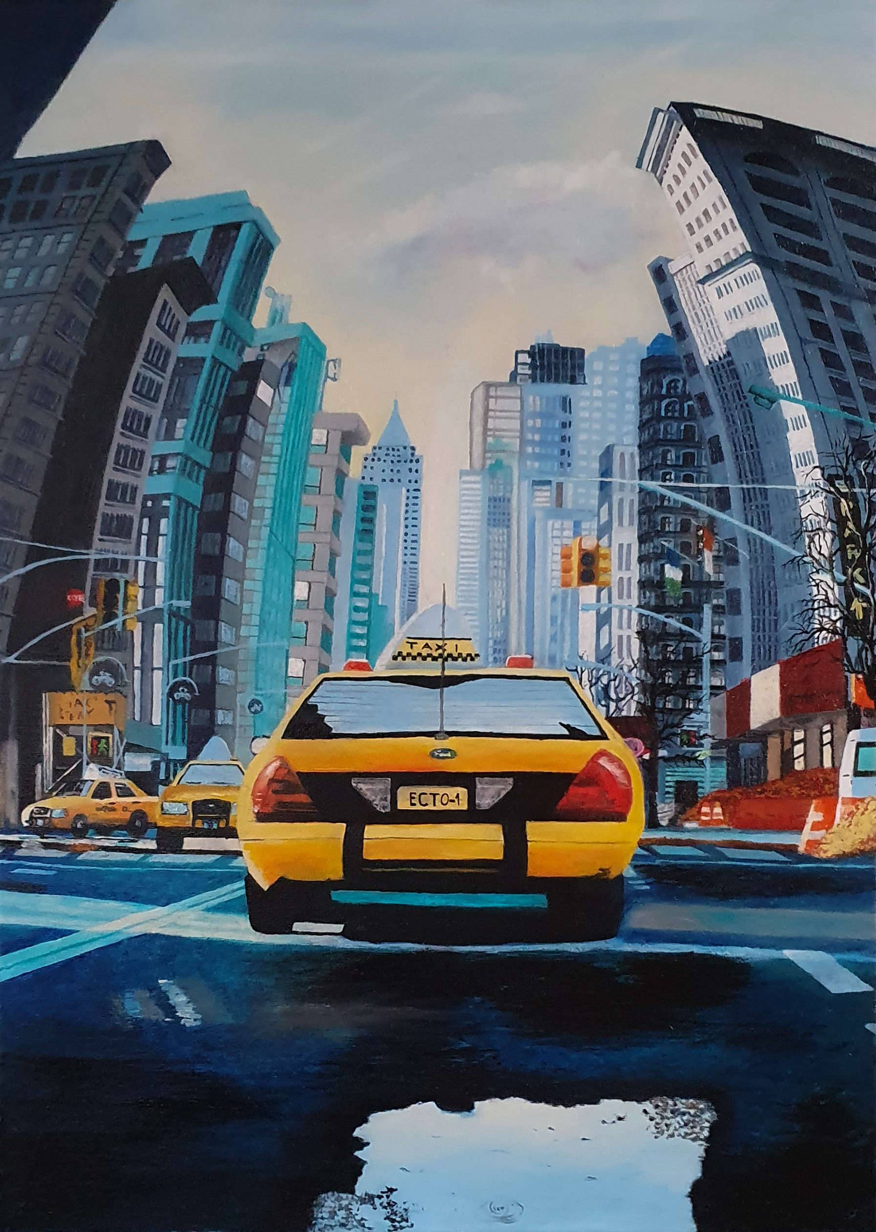 Obraz olejny malowany z zdjęcia Pejzaż miejski New York Obiektyw rybie oko 50x70cm