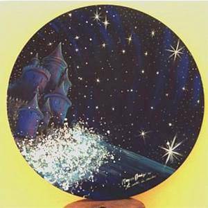 Obraz na pierwszy rzut oka wciąga w magiczny, baśniowy świat. Dominuje tu ciemna, gwiaździsta noc, rozświetlana przez blask migoczących gwiazd. Kompozycja jest dość symetryczna, a centralnym elementem jest tajemniczy zamek. Kolory są głównie chłodne: niebieskości i granaty, co wprowadza nastrój spokoju i tajemniczości. Na pierwszy plan wyłania się wodospad jasnych gwiazd, które opadają z nieba jak błyszczący pył. To jakby ktoś włączył magiczne "sparkle", które dodaje niezwykłego klimatu. Malarska technika artysty jest zarówno subtelna, jak i dynamiczna. Widać tu precyzję pociągnięć pędzla, które tworzą detale zamku oraz miękkie gradienty na niebie. Coś przyciąga, być może nostalgiczy powiew dzieciństwa i te opowieści o księżniczkach i rycerzach. Obraz wzbudza różne emocje. Dla niektórych będzie to przypomnienie bajkowych chwil, kiedy gwiazdy można było dotknąć ręką. Malunek emanuje spokojem, ale i pewnym marzycielstwem, które skłania do osobistych refleksji. Patrząc na niego, poczułem nostalgie za przeszłością, a Ty też czujesz ciepło w środku? Może to marzenie o lepszym świecie, gdzie wszystko jest możliwe.