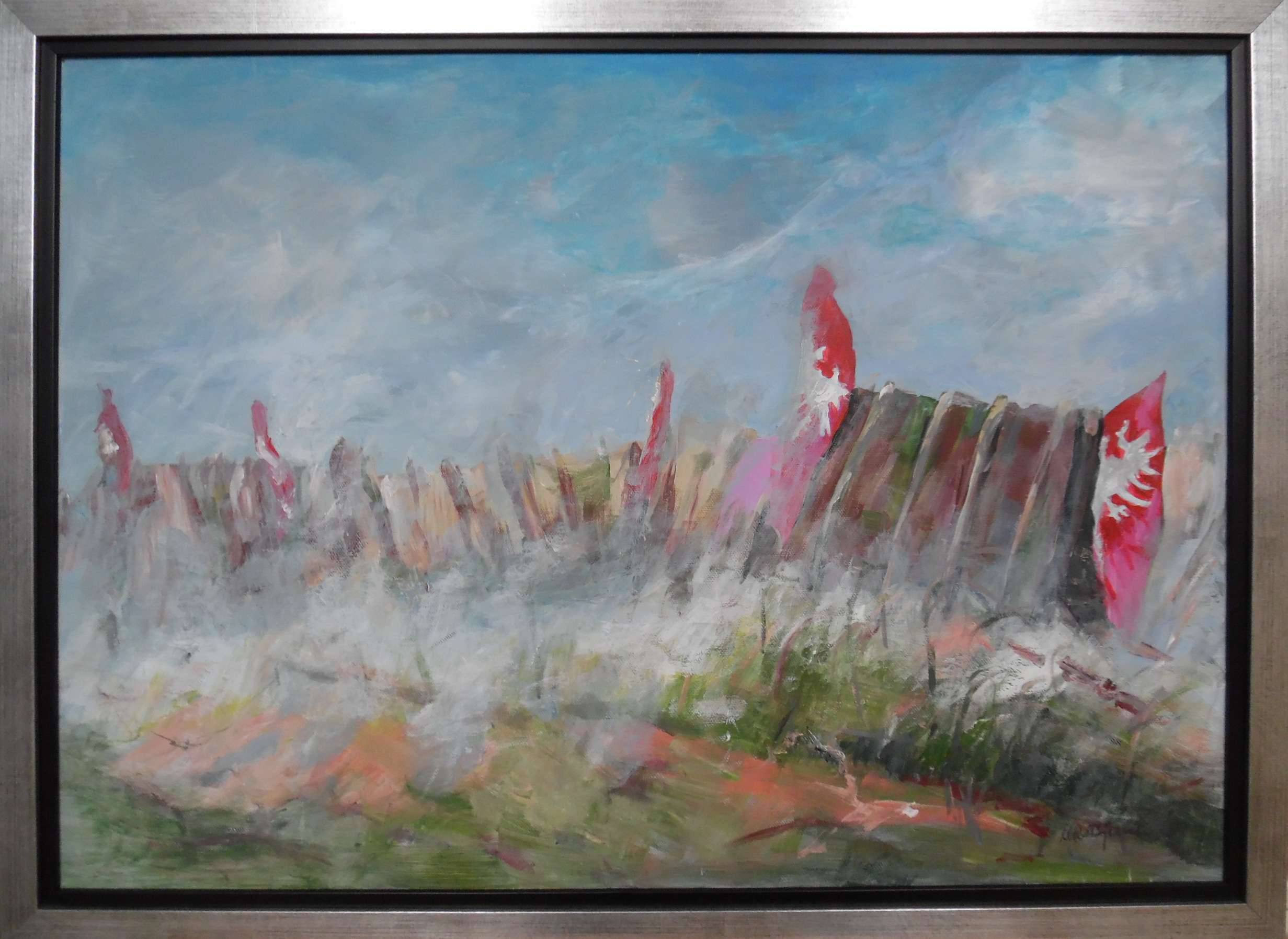 Kopia obrazu jest okładką do książki wydanej w 2018 roku w związku z 100-letnią rocznicą Powstania Wielkopolskiego pt" Bronić Ziemi Ojców" Technika mieszana akryl ,olej. Oprawiony w ramę koloru starego srebra.
