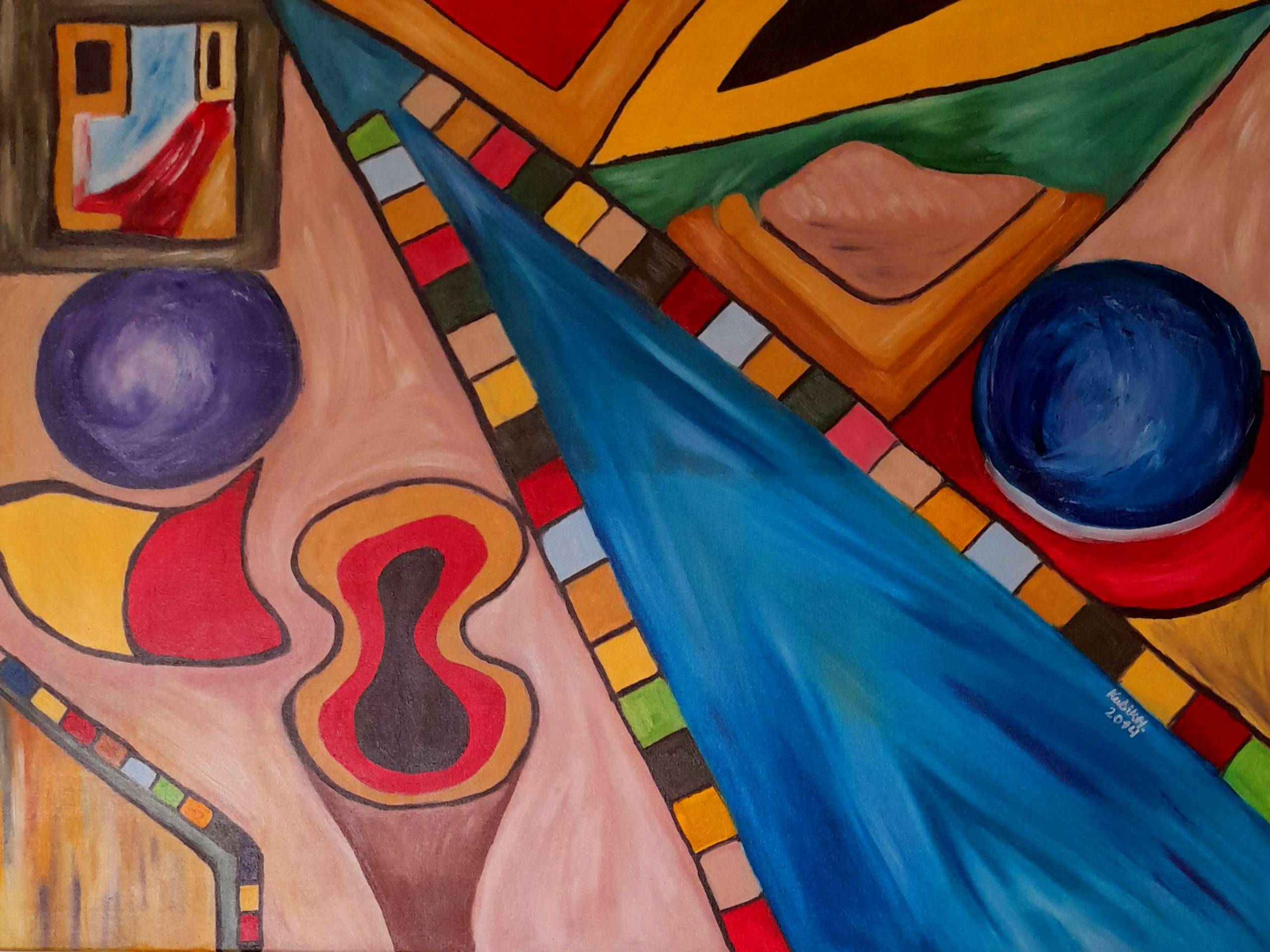 Abstrakcja,obraz ma zamalowane boki,zawerniksowany.