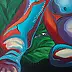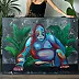 Tropikalny odpoczynek goryla namalowany został w technice akrylowej na płótnie, z bogatą strukturą w kolorze srebrno-metalicznym. Dzięki autorskiej technice ciekawą strukturę można zobaczyć i poczuć pod palcami. Boki zostały estetycznie pomalowane na czarno.