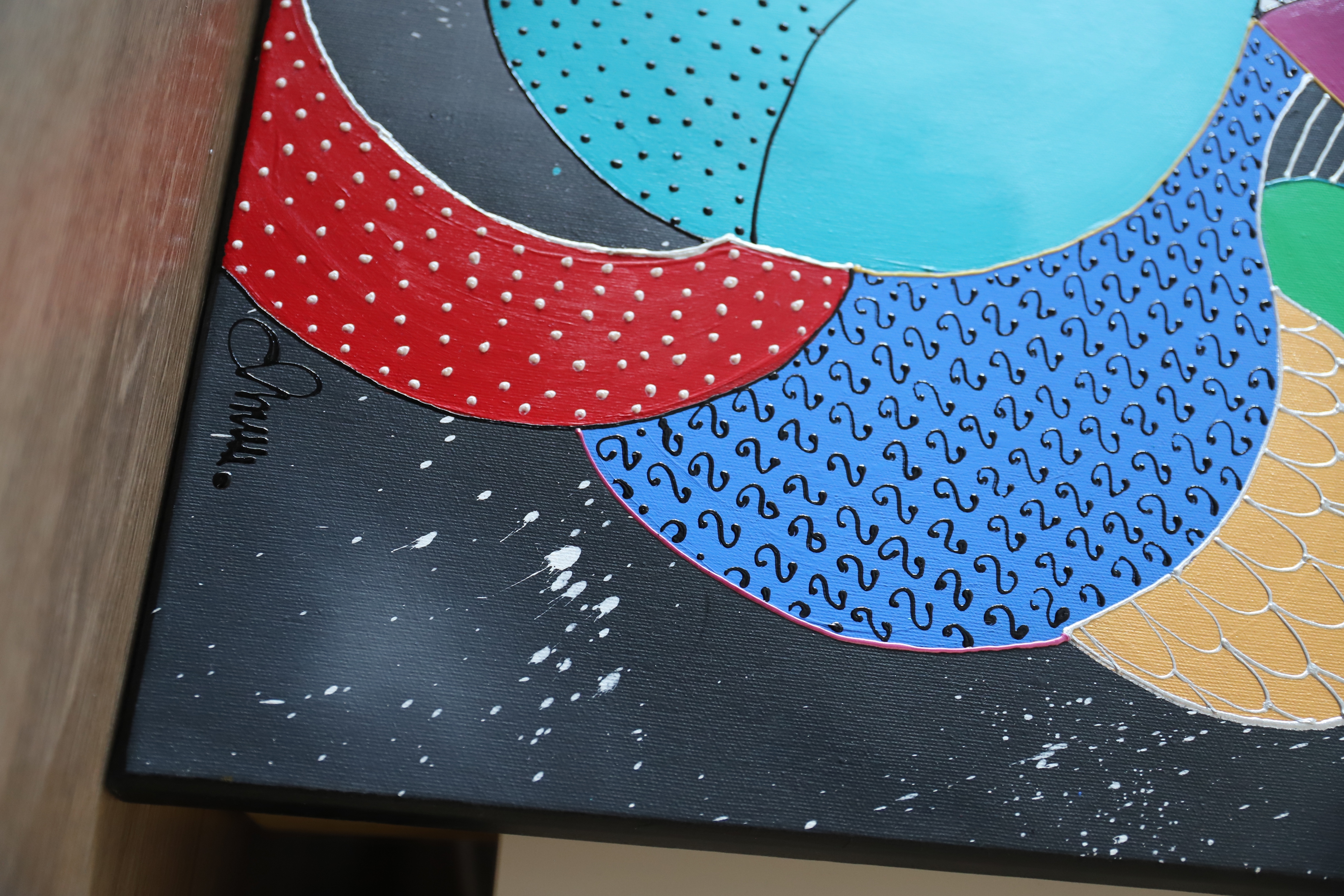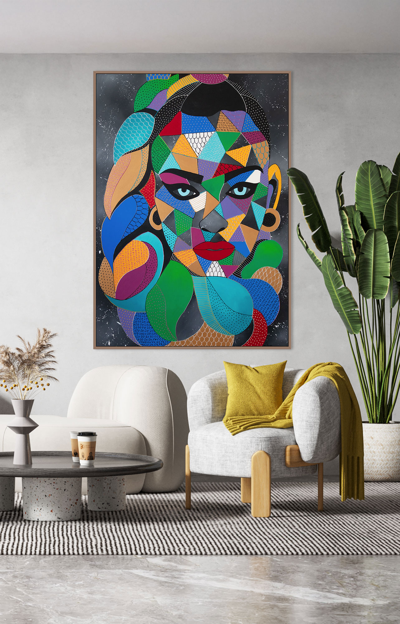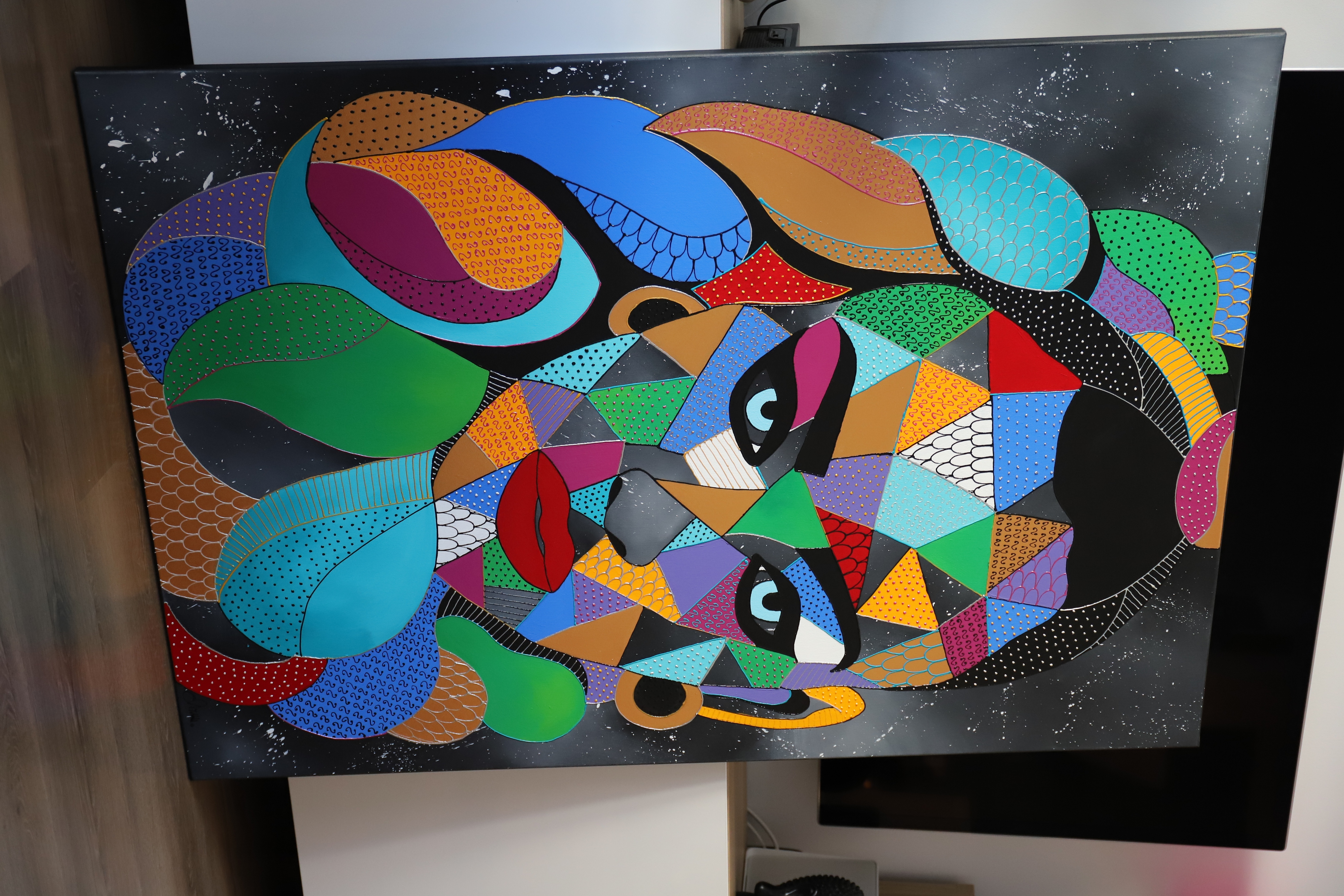 "Siła spojrzenia" to obraz, który przyciąga i hipnotyzuje, łącząc klasyczne podejście do portretu z geometryczną i abstrakcyjną formą. Wykorzystanie pasty akrylowej w tym kolorów perłowych i metalicznych, nadaje kompozycji trójwymiarowości, która zaprasza do interakcji poprzez delikatny dotyk. Centralnym punktem dzieła jest portret kobiety, której intensywne spojrzenie emanuje siłą i tajemniczością. Precyzyjnie dobrane wzory i dynamiczna gra form podkreślają złożoność postaci, nadając obrazowi wielowymiarowy charakter. Kontrastowe barwy oraz strukturalne detale potęgują ekspresję, czyniąc kompozycję niezwykle angażującą. To dzieło jest nie tylko eksploracją piękna i kobiecości, ale także zaproszeniem do atmosfery magnetyzmu, głębi i refleksji.