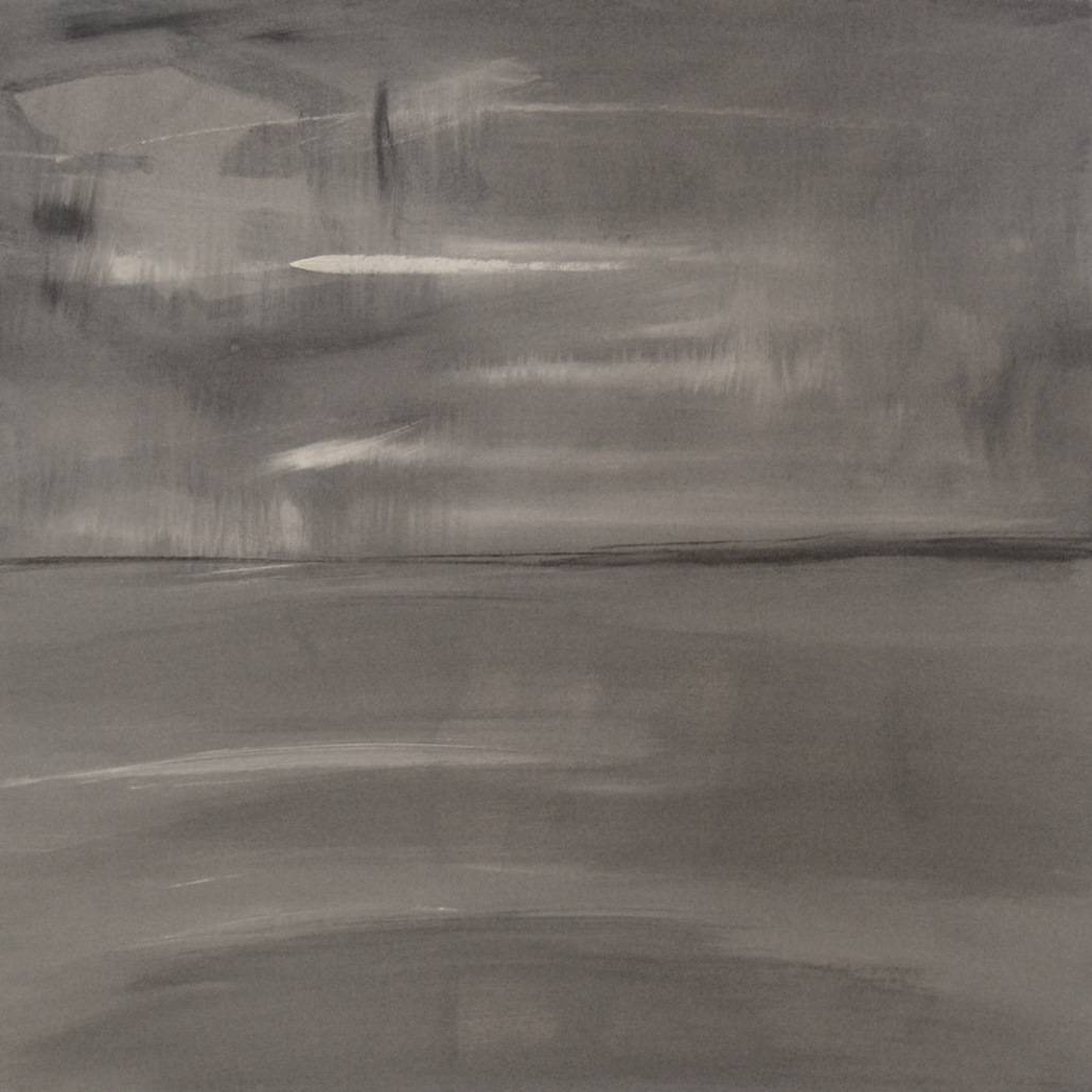 Obraz, który widzimy, jest przykładem minimalistycznej ekspresji, gdzie dominują odcienie szarości. Cała kompozycja jest zanurzona w subtelnych przejściach między gradientami, tworząc płynne i delikatne linie. Abstrakcyjna forma sprawia wrażenie niemalże tajemniczego krajobrazu, gdzie niebo styka się z nierealną linią horyzontu. Pojawia się tutaj pewna "blur" jako technika, w której faktura obrazu wydaje się lekko zamazana, dodając nutkę dynamiki. Atmosfera tego dzieła jest spokojna, choć nieco niepokojąca. Wywołuje uczucie zanurzenia w ciszy, jak gdyby burza była na horyzoncie. Styl artystyczny to elegancka prostota, gdzie każda kreska jest celowym gestem. Emocje? Początkowo można czuć pewne zdezorientowanie, ale później — ciekawość i refleksję. Jakby ktoś spytał, "o co tu chodzi?" Obraz ten może przywoływać w widzu różnorodne interpretacje. Dla jednych to spokój, dla innych to migotanie myśli. Może nawet dzieciak powiedziałby: "To wygląda jak szare chmurki nad jeziorem!". Personalnie, przynosi mi wspomnienia deszczowych dni, spędzonych na patrzeniu przez zamglone okno, zastanawiając się nad tajemnicami świata. W tym obrazie znajdziemy również pewną transcendencję. Jak w muzyce, gdzie czasem cisza jest najważniejsza. Techniue tego dzieła, choć wydaje się prosty, wciąga nas w spiralę introspekcji, prowokując do zadawania sobie pytań.