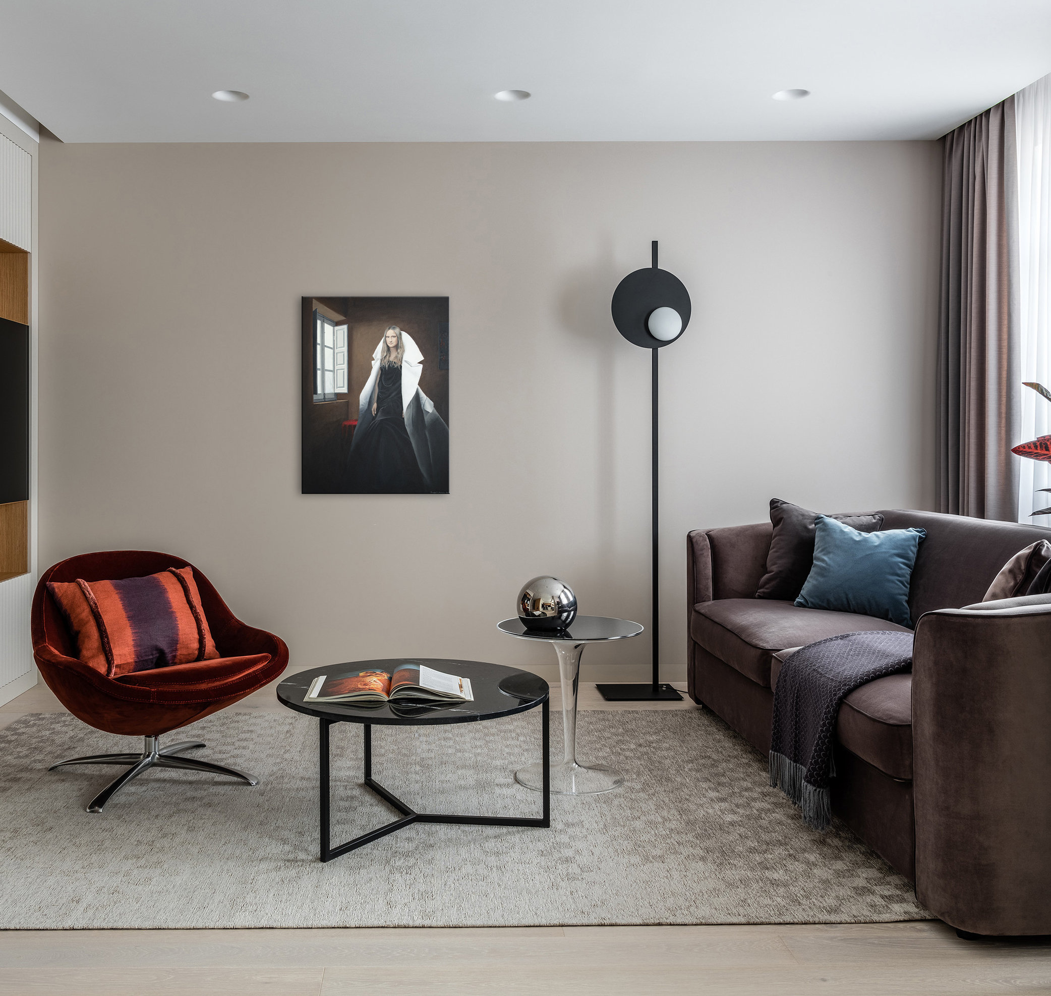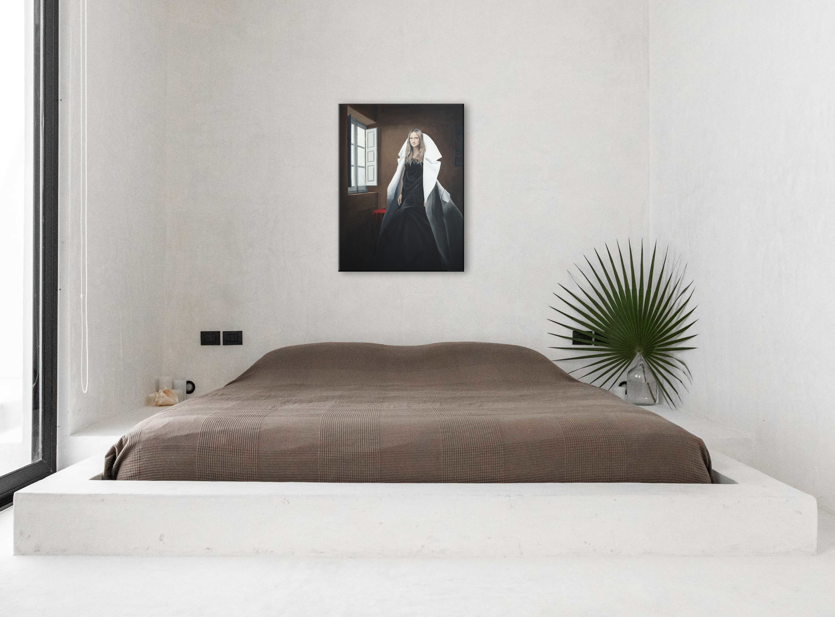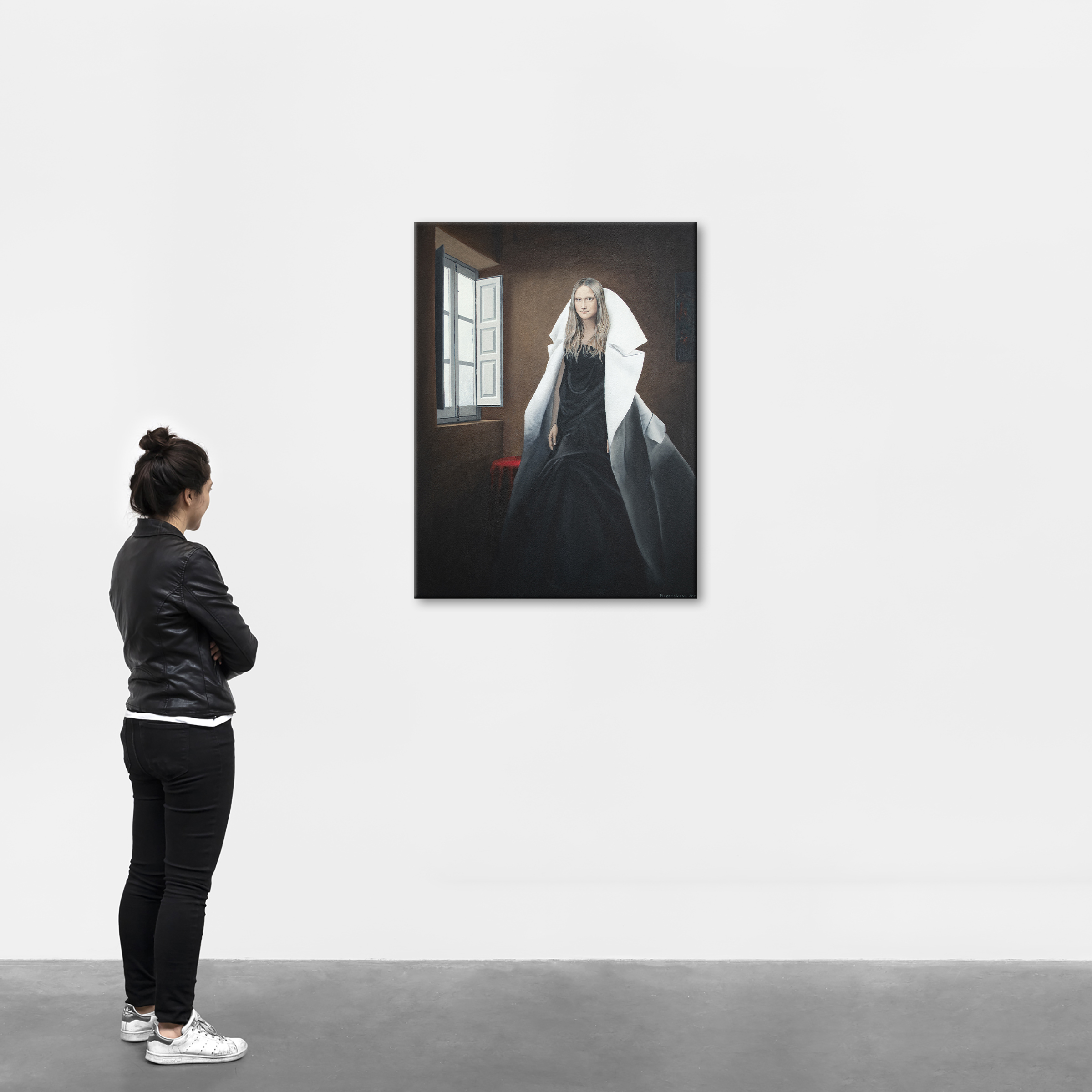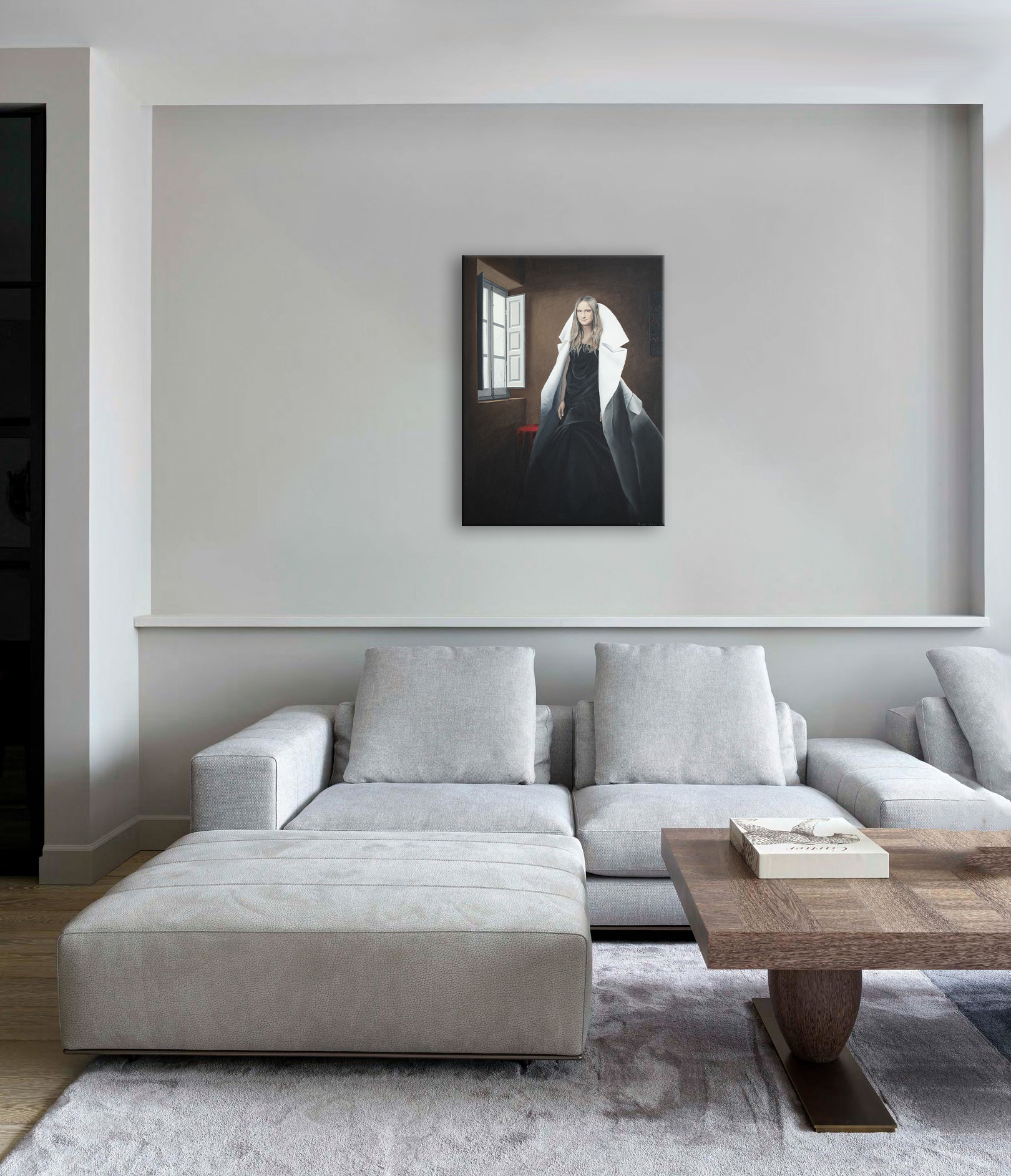W tym dziele starałem się zestawić bezruch introspekcji z nieubłaganym upływem czasu. Centralna postać, kobieta opanowana, ale enigmatyczna, jest umieszczona na rustykalnym tle. Jej powłóczysta szata, surowa i niemal nieziemska, ostro kontrastuje z otoczeniem, symbolizując napięcie między wewnętrznym ja a światem zewnętrznym. Ta gra uchwyca odwieczną walkę między naszą wewnętrzną trwałością a zewnętrznymi siłami zmiany. Poprzez użycie farb akrylowych i głębokich czarnych tonów chciałem wywołać poczucie ponadczasowej kontemplacji, wciągając widza w stan refleksyjny, w którym może rozważyć przemijającą naturę istnienia i delikatną równowagę między bezruchem a ruchem w życiu. Aby uzyskać fakturę przed malowaniem, nakładana jest warstwa teksturowanej pasty z małymi cząsteczkami szkła, a następnie szlifowana w celu uzyskania gładkości. Użyto holenderskich farb akrylowych Amsterdam i włoskiego płótna tm Unico. Wykończenie - lakier satynowy. Końce są pomalowane w kolorze tła. Seria „Life in Avatar”. Stworzone i wysłane na rozciągniętym płótnie na drewnianej ramie. Obraz jest zapakowany w tekturowe pudełko z warstwami folii bąbelkowej, aby go chronić. Dzieło sztuki jest podpisane i dołączone jest do niego certyfikat autentyczności.