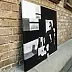 To wizualnie przyciągające uwagę dzieło bada tożsamość przez minimalistyczną soczewkę, łącząc surowy realizm z geometryczną abstrakcją. Postać w czerni — zrównoważona, introspektywna i osłonięta ciemnymi okularami przeciwsłonecznymi — siedzi w centrum rozczłonkowanej przestrzeni złożonej z odważnych prostokątnych bloków w kolorze czarnym, białym i szarym. Napięcie między miękkimi ludzkimi krzywiznami a ostrymi formami architektonicznymi wywołuje zarówno wewnętrzną refleksję, jak i strukturalne ograniczenia. Para milczących sylwetek kotów nawiedza scenę, działając jako symboliczni świadkowie — obserwatorzy z innej warstwy świadomości. Powściągliwa paleta dzieł sztuki wzmacnia ładunek emocjonalny, podczas gdy subtelne detale, takie jak współczesne białe trampki, łączą ponadczasową introspekcję z nowoczesnym życiem. Równoważąc przejrzystość z tajemnicą, dzieło to zaprasza widzów do kwestionowania granic między jaźnią a światem, który ją kształtuje.