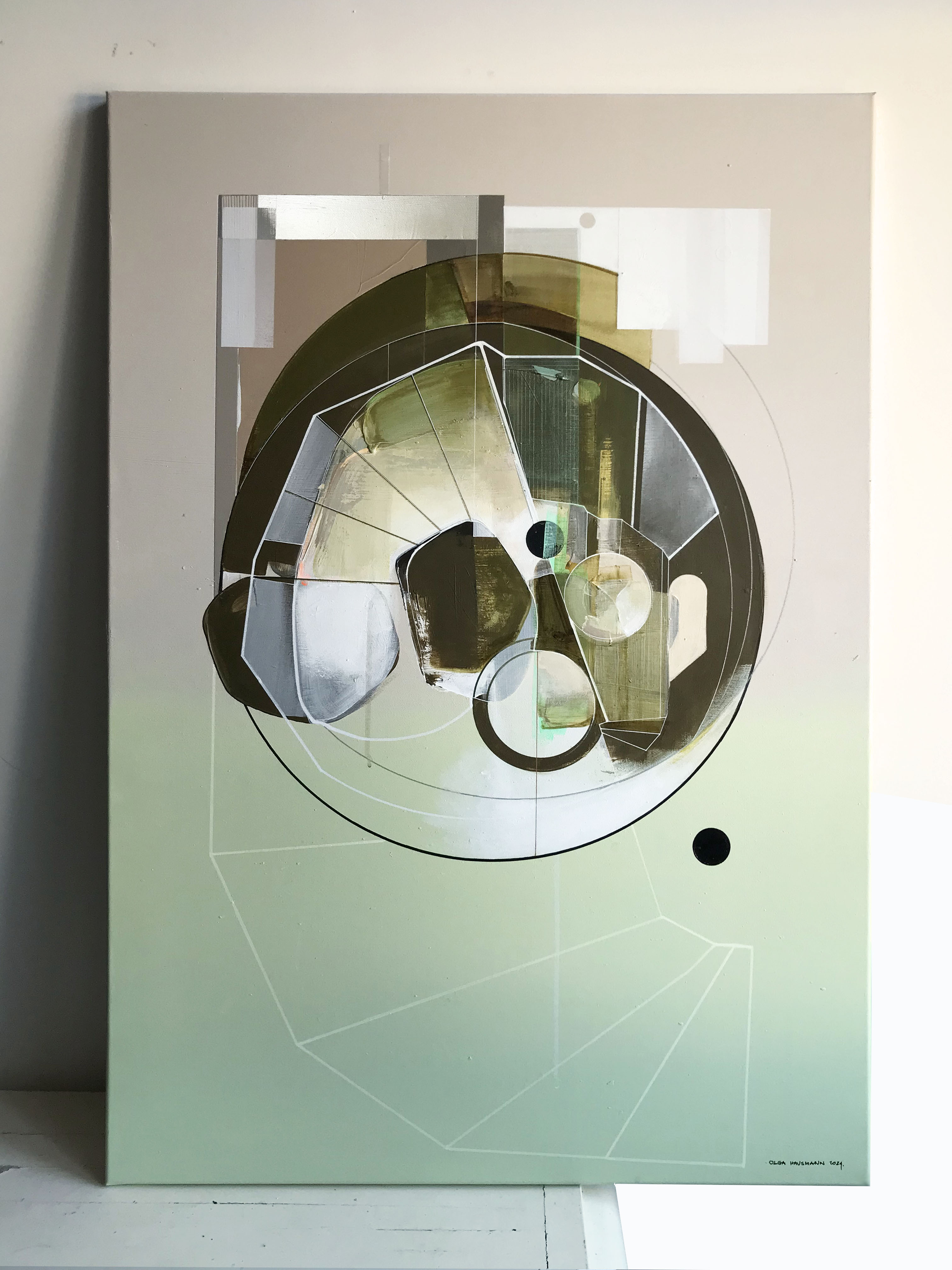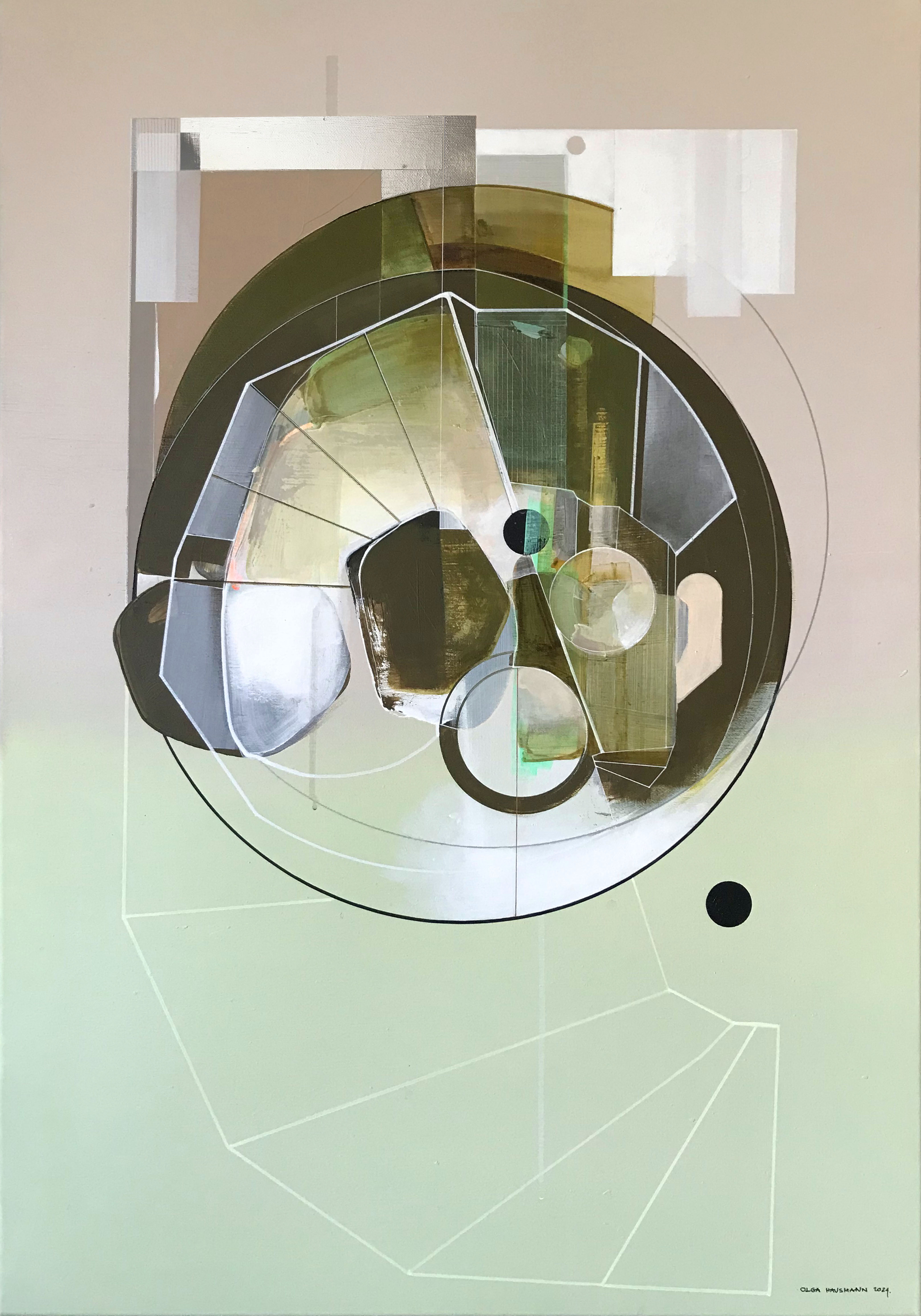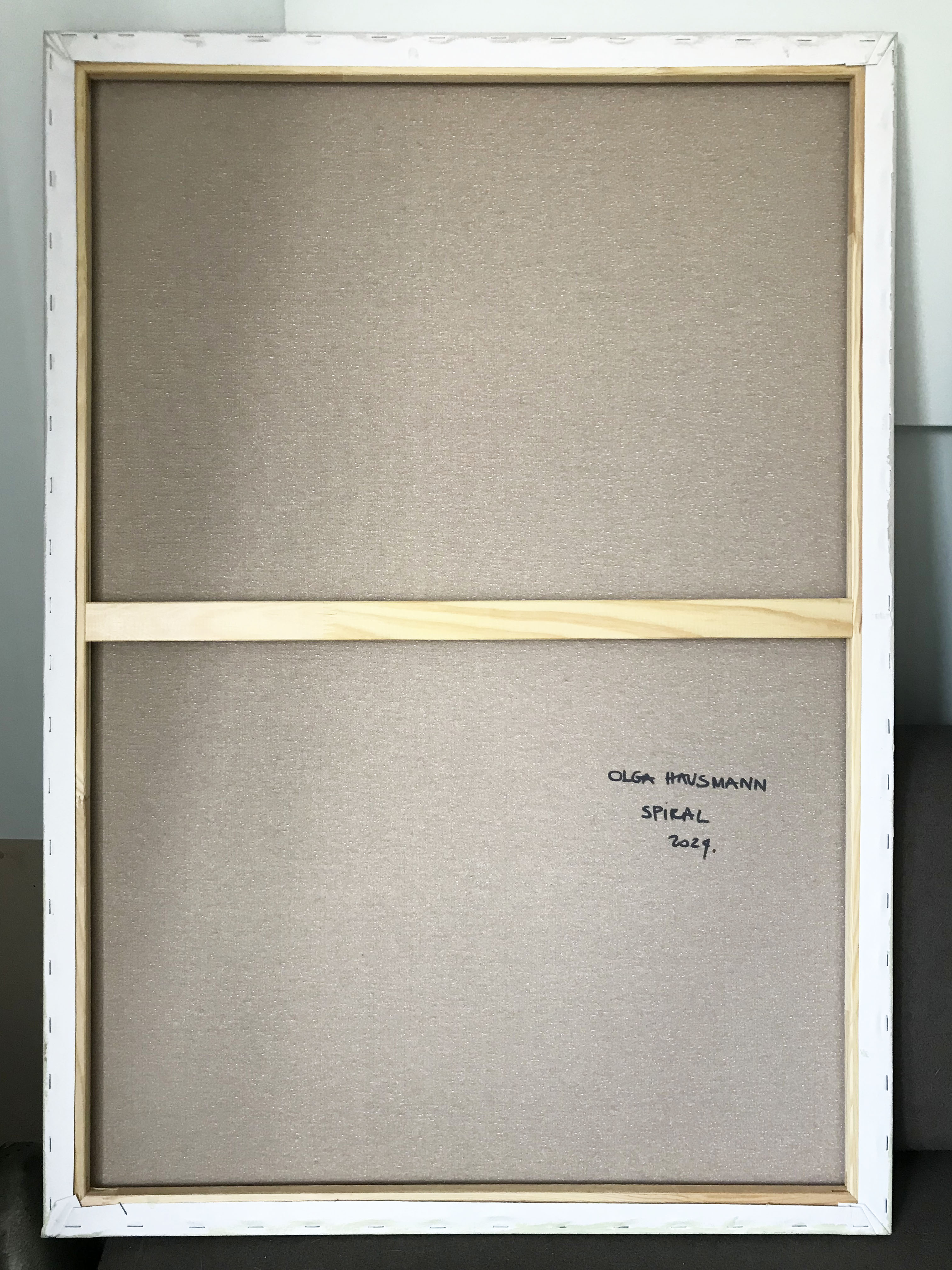 Spiral - obraz abstrakcyjny z 2024 roku. Akryl na płótnie bawełnianym. Zabezpieczony satynowym werniksem. Obraz sygnowany w dolnym prawym rogu oraz na odwrocie pracy. Gradientowe tło, wieloelementowa kompozycja z wyraźnie zarysowaną spiralną strukturą, na obrazie pojawiają się elementy metalizującej zieleni i srebra. Boki pracy zostały zamalowane, nie wymaga ramy, jest gotowa do powieszenia na ścianie. Obraz był prezentowany na grupowej wystawie Salon Pilski Art'2024 w BWA PP.