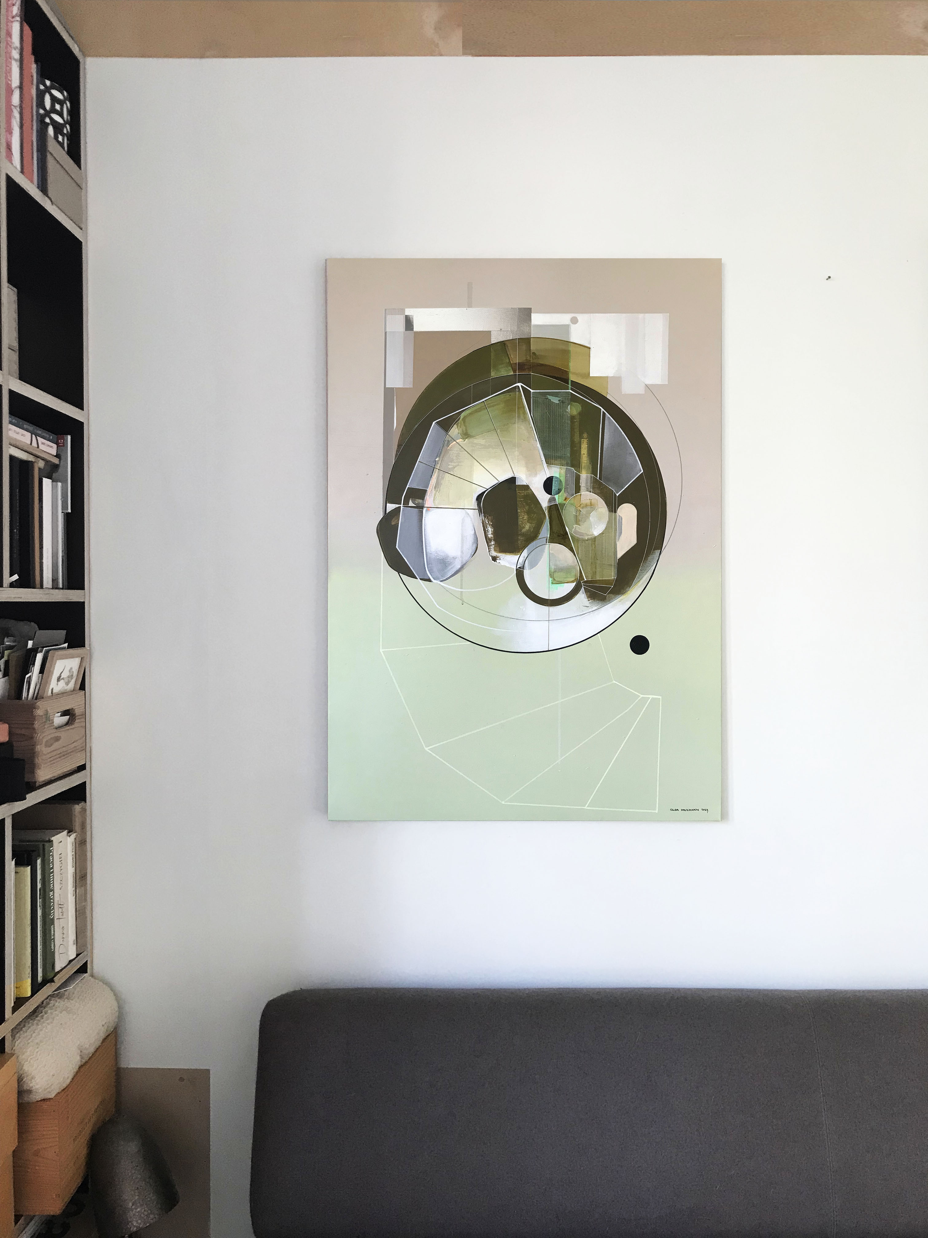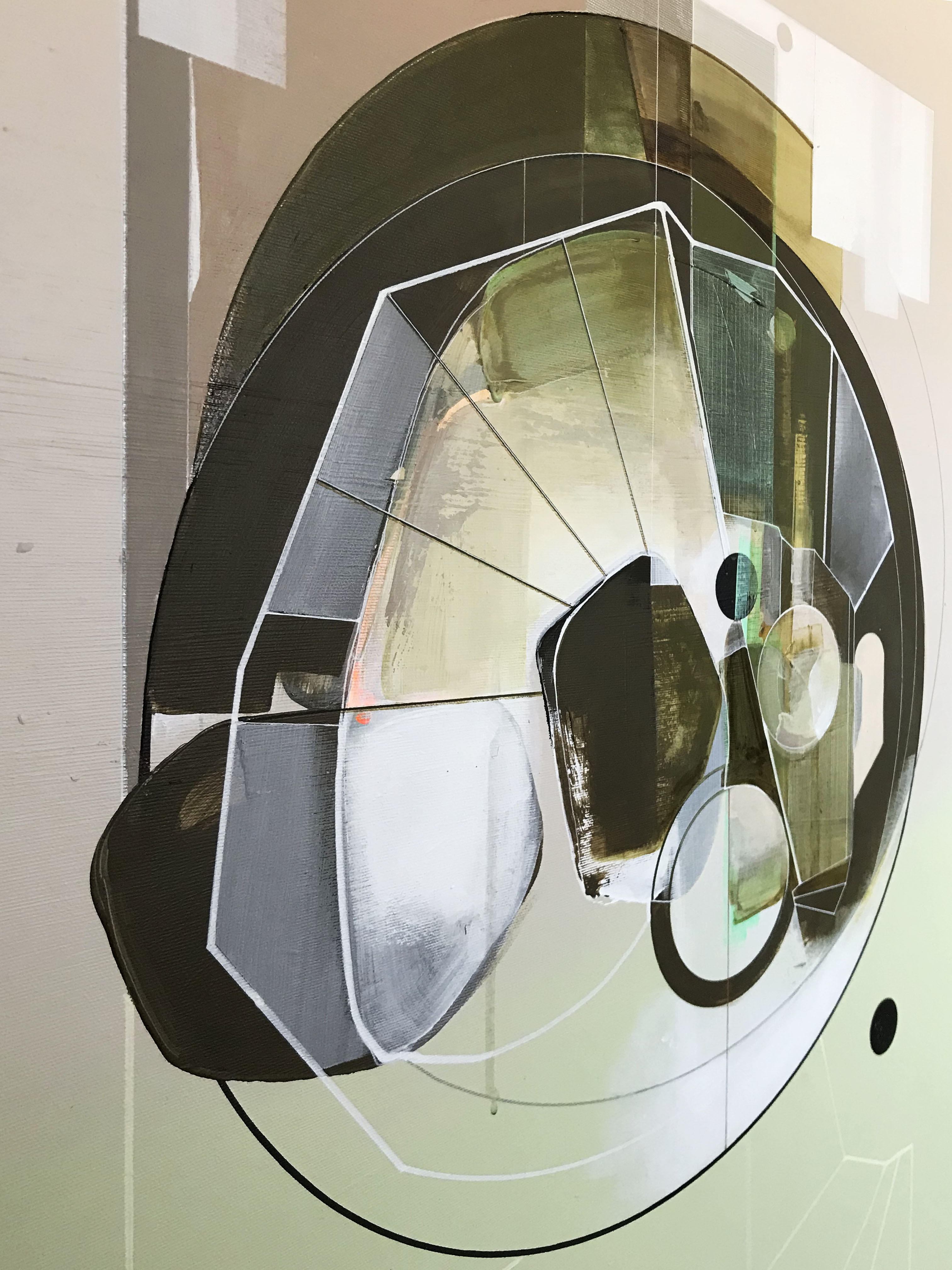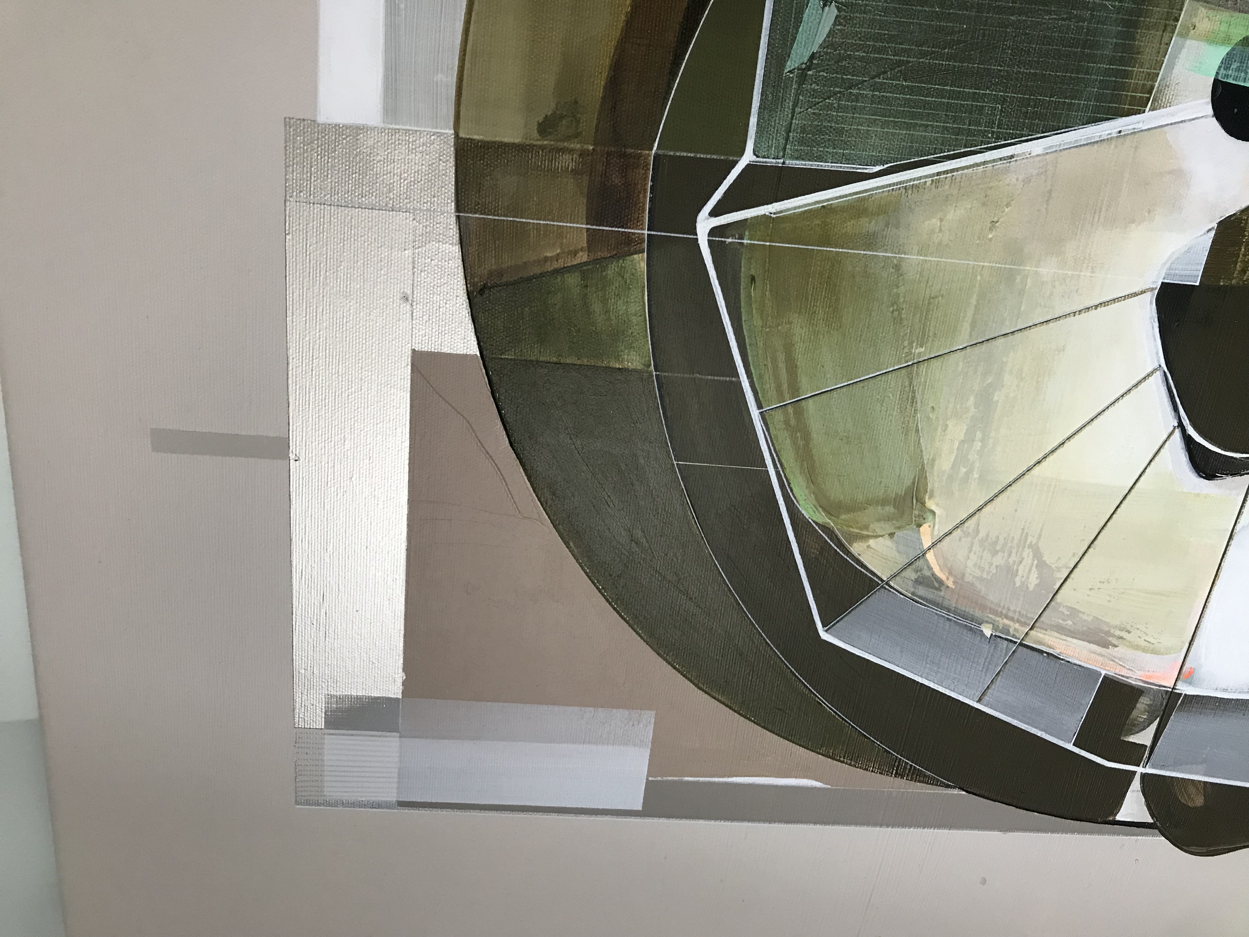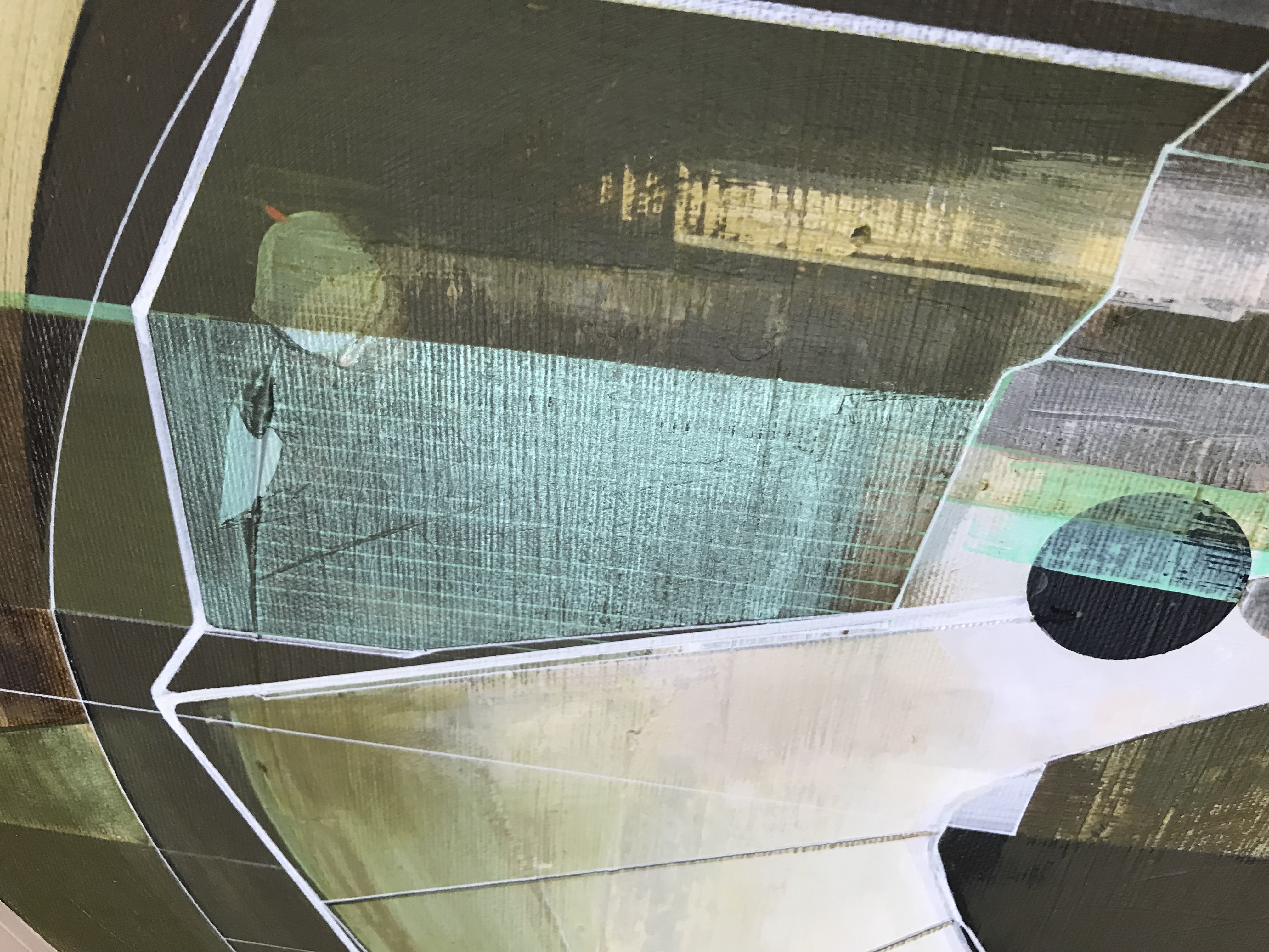 Spiral - obraz abstrakcyjny z 2024 roku. Akryl na płótnie bawełnianym. Zabezpieczony satynowym werniksem. Obraz sygnowany w dolnym prawym rogu oraz na odwrocie pracy. Gradientowe tło, wieloelementowa kompozycja z wyraźnie zarysowaną spiralną strukturą, na obrazie pojawiają się elementy metalizującej zieleni i srebra. Boki pracy zostały zamalowane, nie wymaga ramy, jest gotowa do powieszenia na ścianie. Obraz był prezentowany na grupowej wystawie Salon Pilski Art'2024 w BWA PP.