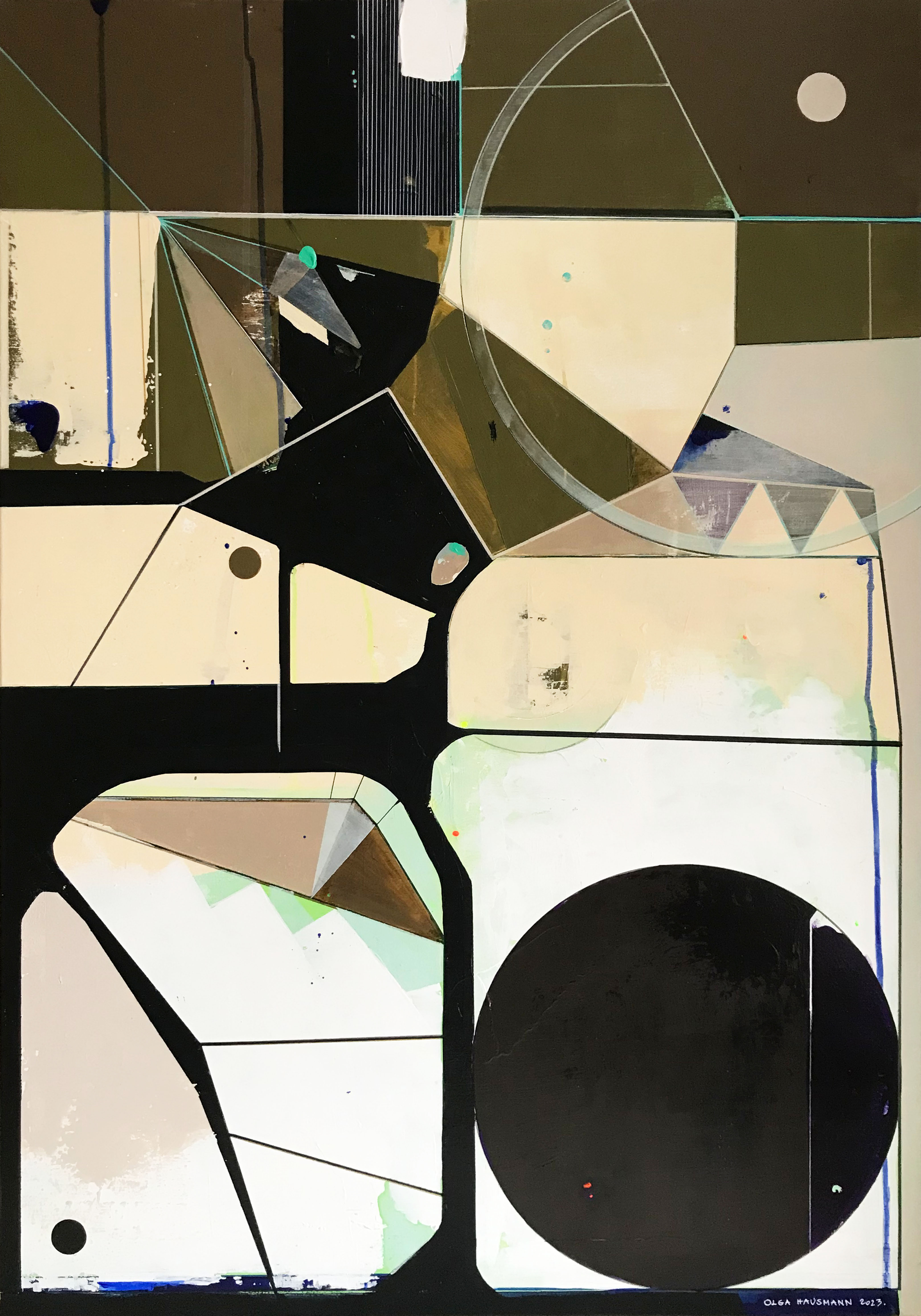 In the woods - obraz akrylowy z 2023 roku. Płótno bawełniane zabezpieczone satynowym werniksem. Na obrazie dominuje mieszanka kolorów ziemi - oliwkowe zielenie, beże i głębokie czernie przeplatają się ze sobą, tworząc misterną mozaikę geometrii. Kształty przypominają fragmenty origami, ostre kąty i łagodne łuki wyłaniają się z chaosu. Kompozycja jest zbalansowana i precyzyjna, choć na pierwszy rzut oka wydaje się chaotyczna. Atmosfera, jaka bije z tego dzieła, jest zarazem spokojna i nieco zagadkowa. Może to przez tę minimalistyczną paletę barw, może przez kontrasty. Praca może budzić w odbiorcy skojarzenia z architekturą lub abstrakcyjnymi krajobrazami, każde spojrzenie odkrywa coś nowego. Dzieło prowokuje do zastanowienia się nad tym, co widzialne, a co ukryte. Czy to przestrzeń miejskiego labiryntu, czy może mapa kosmiczna? Praca wzbudza też refleksję nad tym, jak różne elementy mogą współistnieć w harmonii. Praca sygnowana w dolnym prawym rogu oraz na odwrocie płótna. Boki zostały zamalowane - obraz jest gotowy do powieszenia na ścianie. Obraz był prezentowany na indywidualnej wystawie Artystki w BWA w Pile.