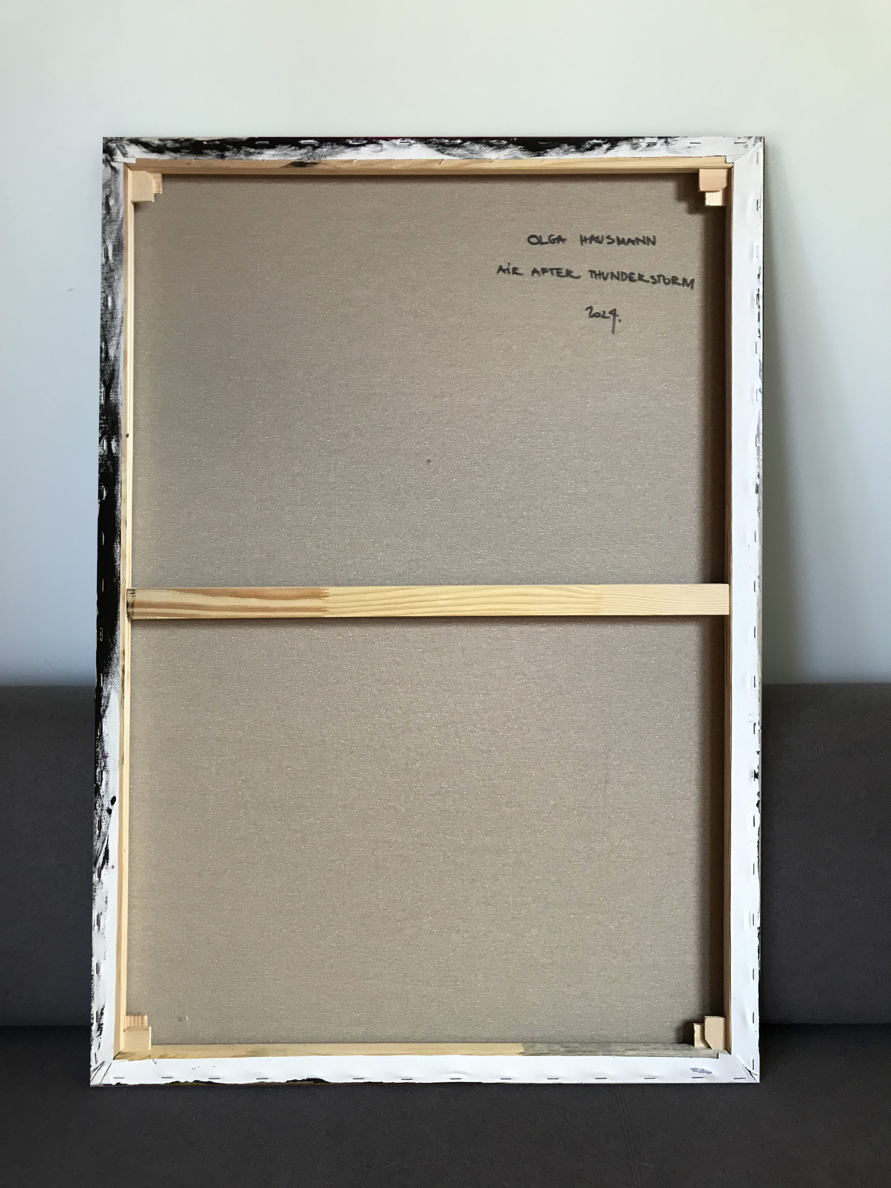 Air after thunderstorm to obraz akrylowy z 2024. Bawełniane płótno zostało zabezpieczone satynowym werniksem. Geometryczna struktura o stonowanej kolorystyce przełamana czernią i elementami metalizującego srebra. Obraz sygnowany w dolnym lewym rogu oraz na odwrocie płótna. Boki obrazu są zamalowane - jest gotowy do powieszenia na ścianie. Obraz był prezentowany na indywidualnej wystawie Artystki w BWA w Pile. Do każdego obrazu jest dołączony certyfikat autentyczności.