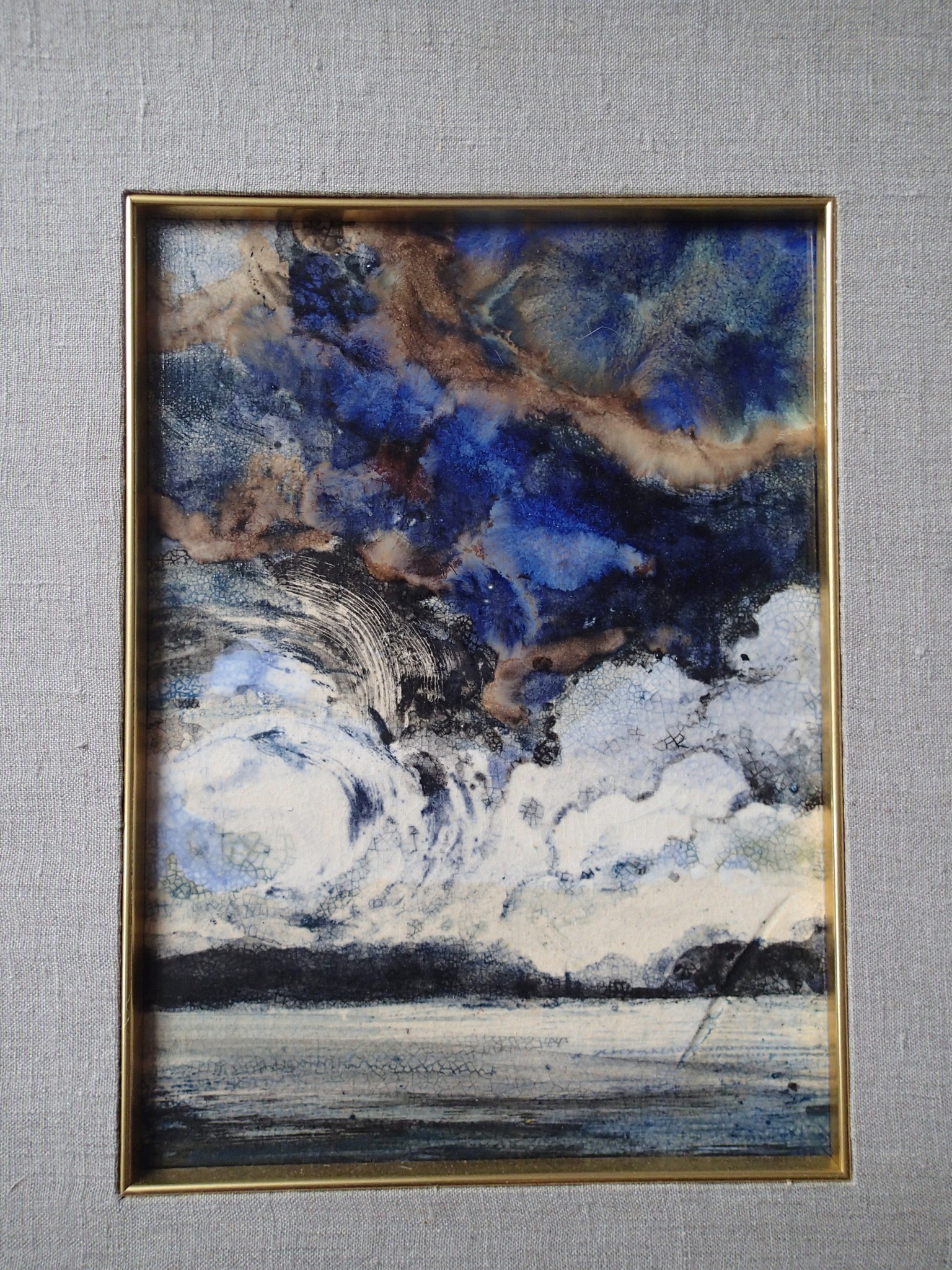Obraz prezentuje dynamiczną scenę nieba, gdzie chmury wirują jakby w tańcu. Dominują odcienie błękitu i granatu, przeplatając się z brązami i bielą. Te kolory tworzą dramatyczną kompozycję, pełną ruchu i energii. Technika, jaką zastosował artysta, przypomina chaotyczną akwarelę, gdzie kolory swobodnie się mieszają i przenikają, a kontury są delikatnie rozmyte. Nastrój obrazu jest pełen napięcia. Można niemal poczuć elektryczność w powietrzu, jakby zaraz miało nastąpić coś wielkiego. Ten majestatyczny chaos wywołuje dreszcz ekscytacji, a jednocześnie pewien niepokój. Look at these clouds, one might think, how powerful they are. Artysta stosuje techniki takie jak rozmywanie i nakładanie warstw, co dodaje głębi i struktury. Dla mnie obraz przypomina burzę emocji. Może wywoływać poczucie ulotności chwil czy nieuchronności zmian. „Tam jest duża chmura i wygląda jak smok!”, powiedziałoby dziecko. Wpatrując się w ten obraz, można ulec refleksji nad naturą i jej nieokiełznaną siłą. Kompozycja zachęca do zadumy, a może też po prostu do podziwu dla piękna dynamicznego nieba. Kto wie, co jeszcze kryje się w tym niebie? Al dziękuję :)